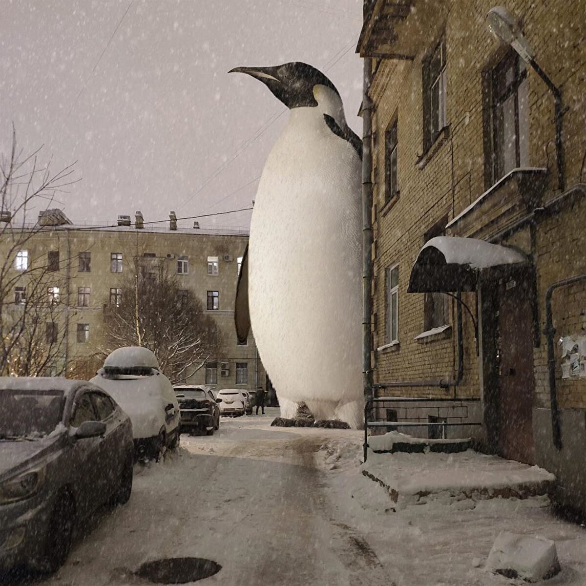 Ama biraz gerçeküstü! 👀⠀ ⠀ Bir rakunun Saint Petersburg nehirlerinde pençelerini yıkaması ya da şehir otobüsünden yuvarlanan bir ahtapot çoğu kent sakini için şaşırtıcı olabilir. Fotoğraf sanatçısı @solovyewadim kolajlarında kent görüntülerini ve dev dostları kullanıyor ve tüm bunlar onun için çok normal. 🙌🏻😌