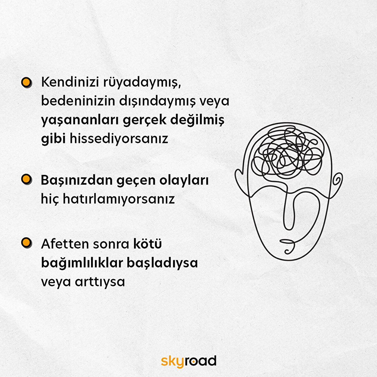 Uzmanlar sık sık afet bölgesinde psiko-sosyal desteğin öneminden ve neler yapılabileceğinden bahsediyor. Peki, sonrasında ne yapılmalı? İlk travma anından sonra -birincil ya da ikincil travmalarda- yaşanılan olayın üzerinden bir süre geçmesine rağmen belirtiler devam ediyorsa bir uzmandan yardım almakta fayda var.