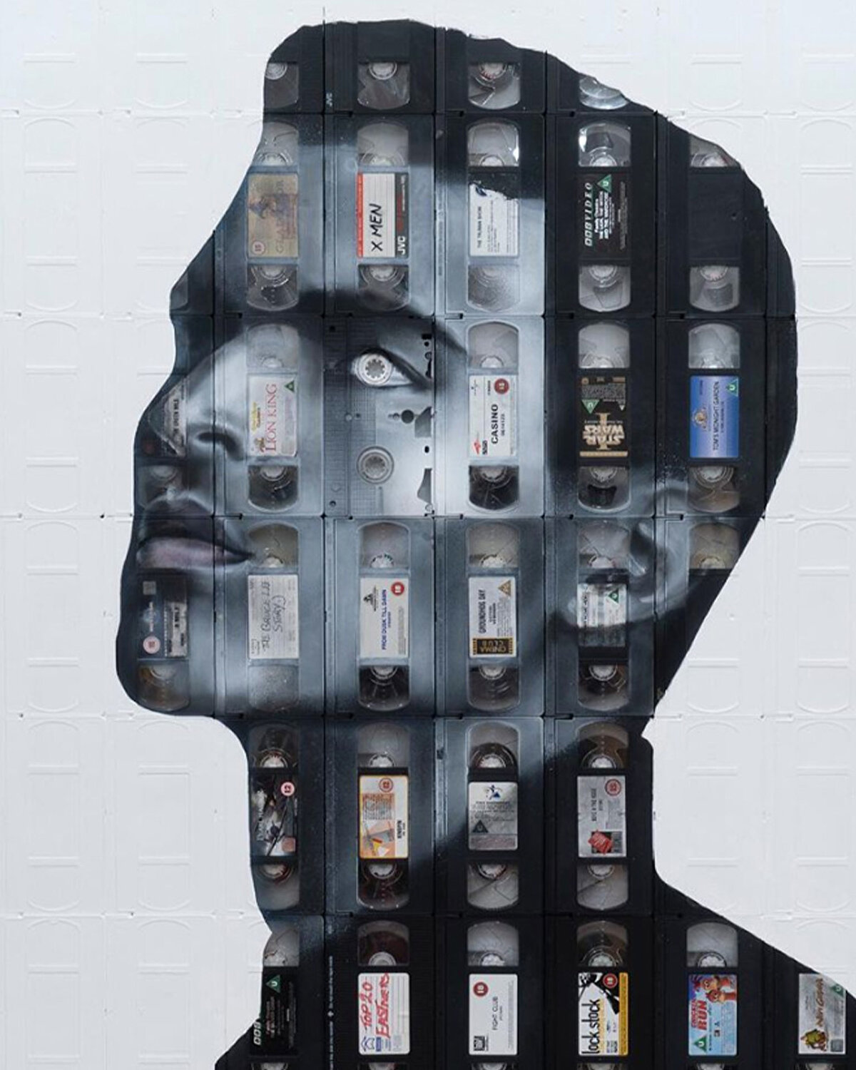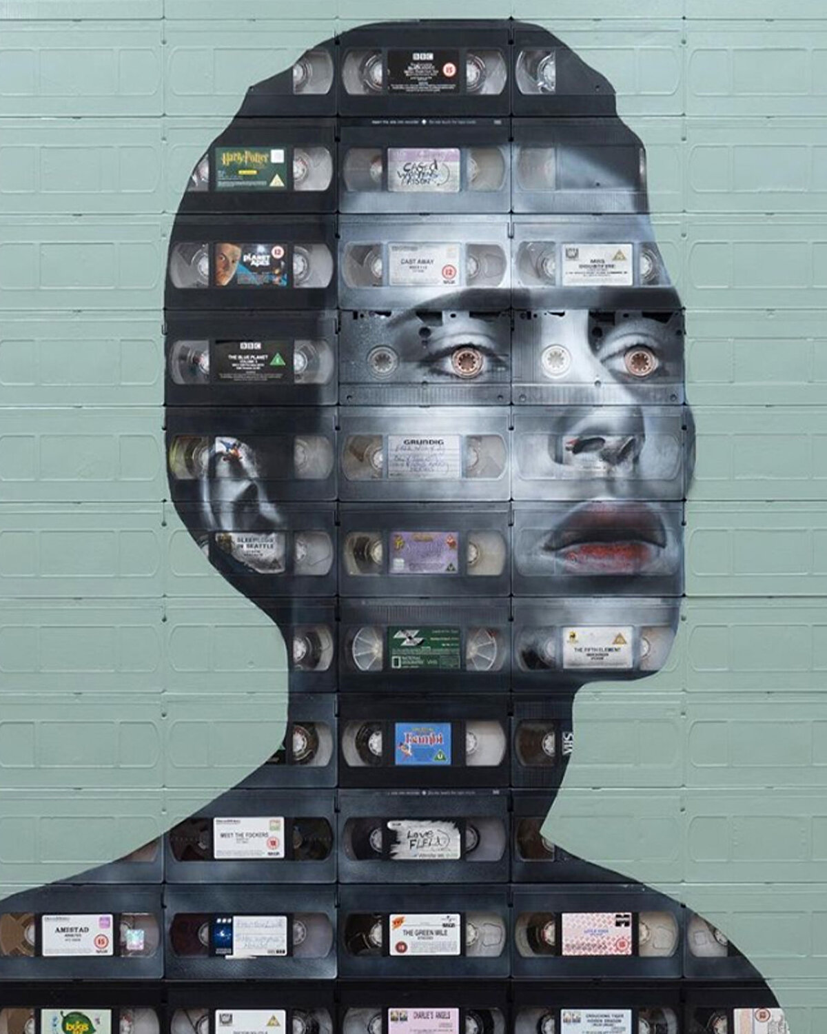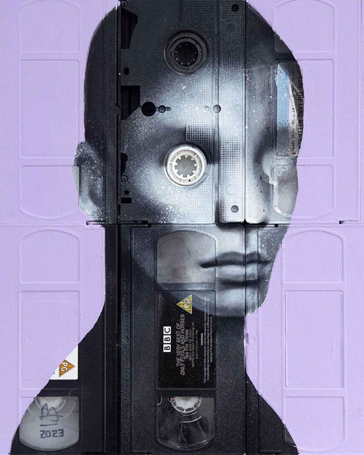 Londra merkezli sanatçı @nickgentryart, disketler ve kasetler gibi modası geçmiş teknolojinin üzerinde çalışarak, gerçek ve çevrimiçi kişilikler arasındaki uçurumu araştırıyor. İnternetteki kullanıcıların performansı ve sunumu, giderek yapaylaşan güzellik standartları ve hafızanın zaman içindeki istikrarsızlığı hakkında son derecede çağdaş ve benzersiz sorular soruyor. Figürlerini sıklıkla gri tonlamalı boyayarak onları tanımlayıcı özelliklerden yoksun bırakan ve gözlerini vurgulamak için kasetin plastik makaralarını kullanan sanatçı, insan ve makinenin kaynaşması ile ilişkilendirilen soğuk, kopuk duyguları ortaya çıkarıyor ve dijital kimliklerin yapay, maskeli doğasını vurguluyor.
