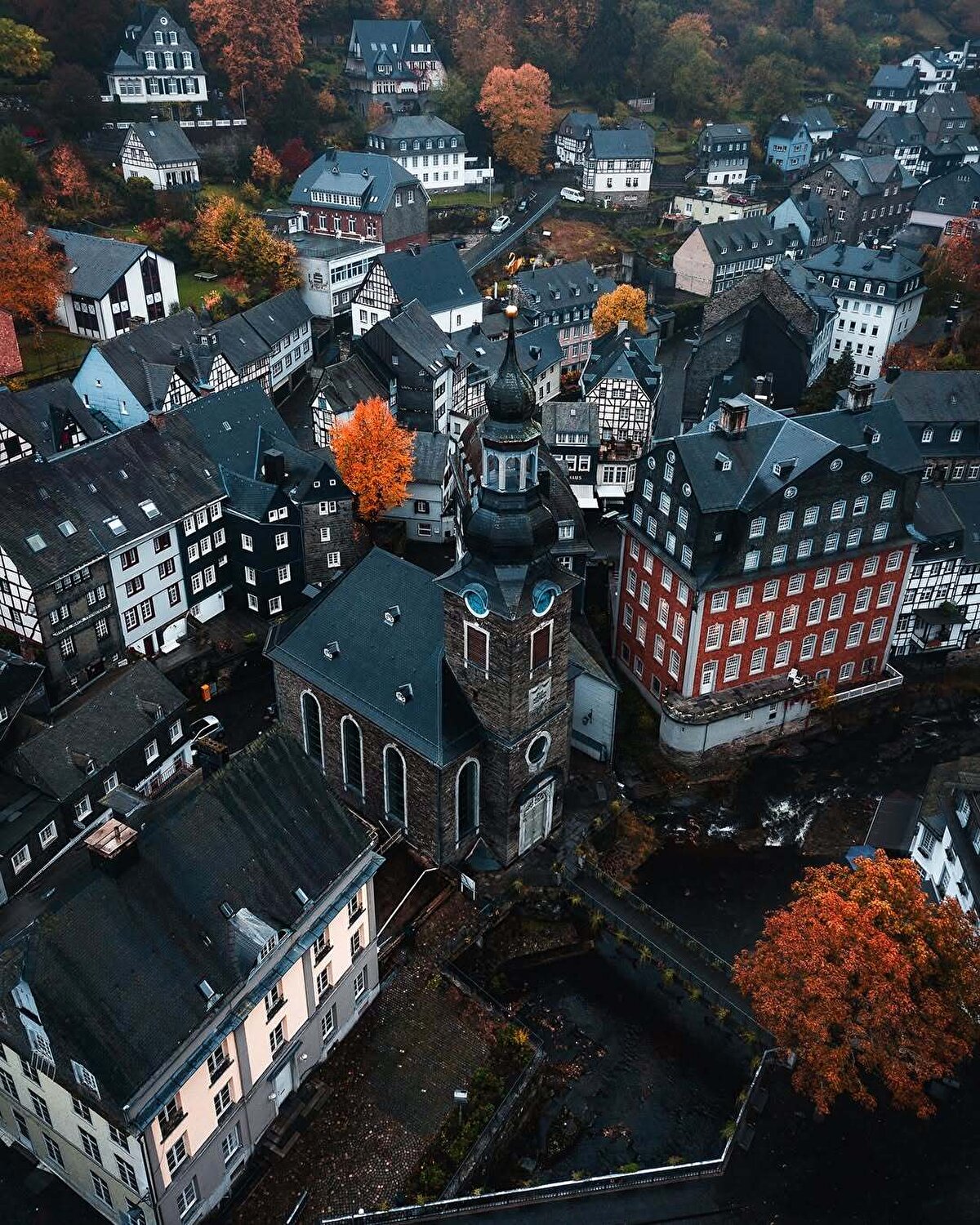 Almanya-Belçika sınırında, Rur Nehri'nin kıyısına kurulu Monschau, tarihî dokusu ve doğasıyla büyüleyen bir Ortaçağ kasabası. 11. yüzyıla uzanan geçmişi boyunca Fransa, Almanya, Prusya ve Belçika'nın yönetiminde kalan kasaba, bu tarihsel mirasın izlerini mimarisinde ve kültüründe barındırıyor.