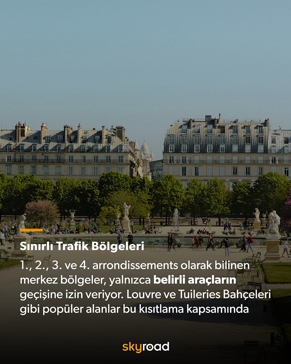 Bu adımla, şehir merkezinde trafiğin %30 oranında azaltılması, gürültü ve hava kirliliğinin düşmesi öngörülüyor. Kasım itibarıyla hayata geçen uygulama, Paris'in birinci, ikinci, üçüncü ve dördüncü bölgelerini kapsıyor. Louvre Müzesi ve Tuileries Bahçeleri gibi popüler alanların bulunduğu bu bölgelere artık sadece toplu taşıma, taksiler, acil servisler, engelli bireyler ve bölgede ikamet eden ya da çalışanlar bu alanlara araçlarıyla girebilecek. Ayrıca, tıbbi randevular veya alışveriş gibi belirli amaçlarla yapılan ziyaretler de istisna kapsamında olacak.
