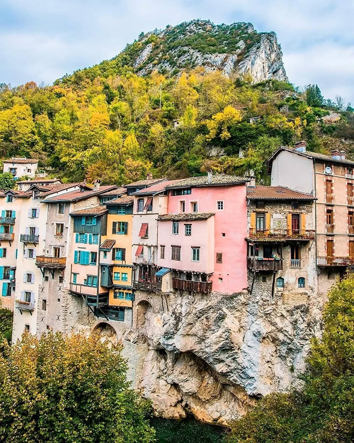 Fransa'nın Auvergne-Rhône-Alpes bölgesinde bulunan büyüleyici köy Pont en Royas, Vercors Dağları'nın eteğinde yer alıyor. Bourne Nehri'nin kıyısında konumlanan köy, doğayı ve tarihi eşsiz güzellikte birleştiriyor. Tarihi 16. yüzyıla uzanan Pont en Royas ünlü ''sarkan evleri'' ile muhteşem bir manzara sunuyor. Nehre doğru eğimli kayalıklar üzerine inşa edilen bu renkli evler, köyün zengin geçmişini yansıtıyor. Tarihte özellikle kereste ve su taşımacılığı için stratejik bir öneme sahip olan köy, nehir üzerindeki ahşap köprüleri ve dar taş sokakları ile geçmişin izlerini korumaya devam ediyor.