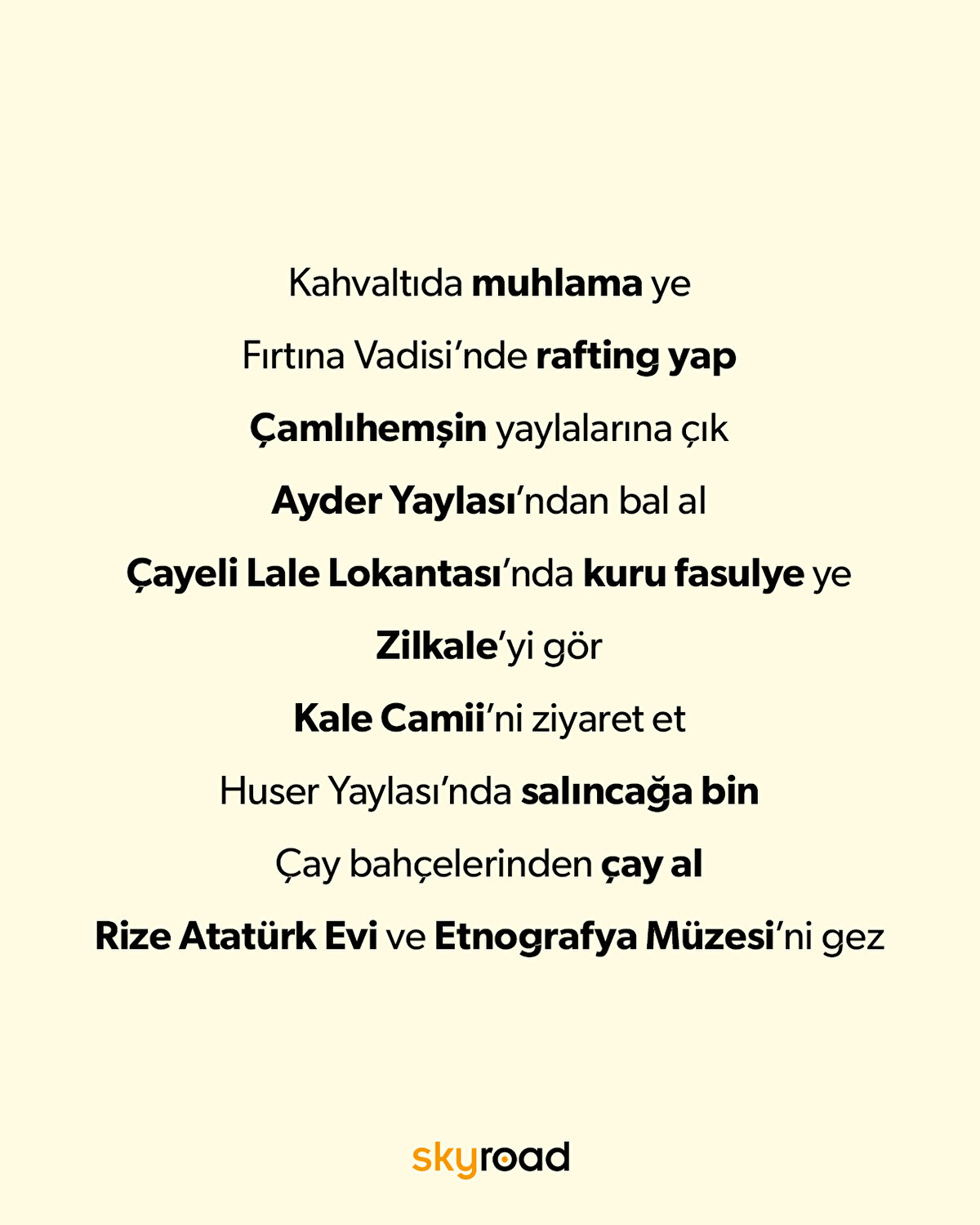 Rize'ye yapılan bir gezide doğa, kültür, tarih ve gastronomi bir arada deneyimlenebiliyor. Bu nedenle Rize, hem dinlenmek hem de keşfetmek isteyen gezginler için ideal bir rota.