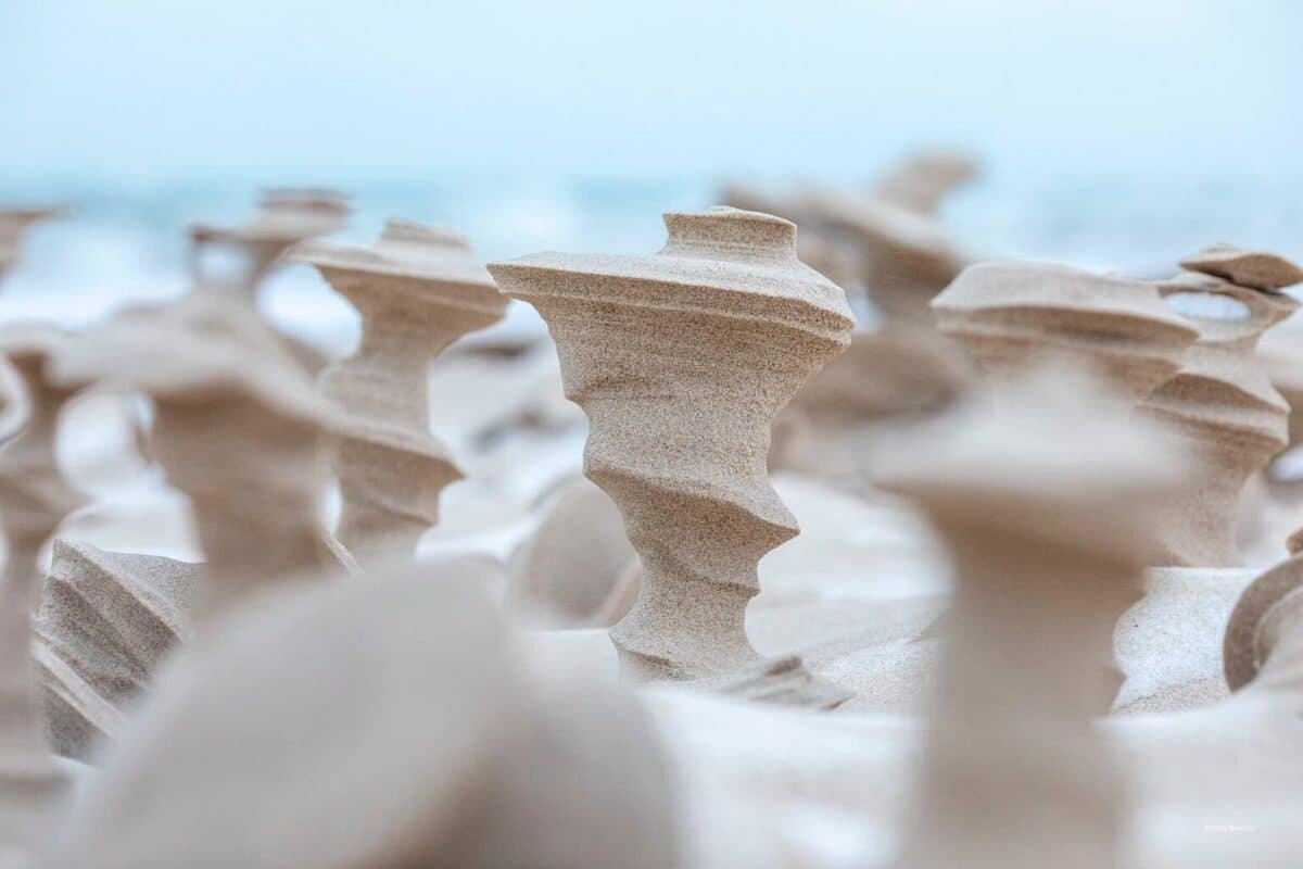 Sanatçının fotoğrafladığı karelerdeki oluşumların karşılaştığı en uzun kum yapılar olduğunu ifade ediyor. Yaklaşık 38 cm uzunluğunda ve daha farklı, çeşitli şekillerin etkileyici görüntüler olduğuna ek olarak, ¨O kadar çok vardı ki en büyük zorluk hangilerine odaklanacağımı bulmaya çalışmaktı. Çeşitli şekil ve boyutlarda bir dizi fotoğraflar yakalamaya çalıştım.¨ dedi.