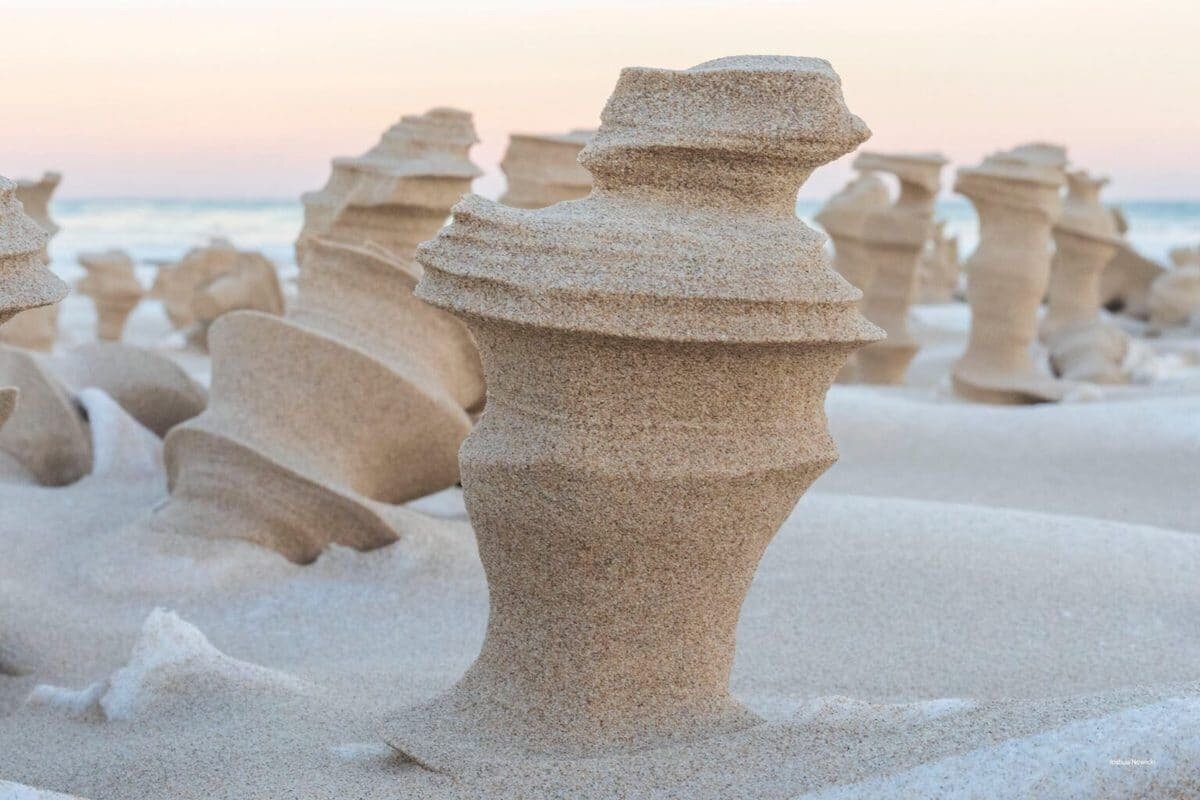 Fotoğraf sanatçısı, birkaç gün gerçekleşen ve kuvvetli rüzgar-su-kum etkileşimiyle oluşan heykelleri çekebilmek için bölgeye sık sık ziyarette bulunduğunu, ancak son karşılaştığı manzaranın büyüleyici olduğunu söyledi. ¨Geçici oldukların bilmek gerçekten zevk veriyor; kum yapıları en iyi şekilde yakalamak için doğru zamanda orada olmalısınız.¨ diye ekledi.