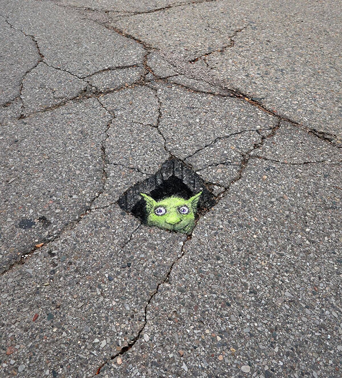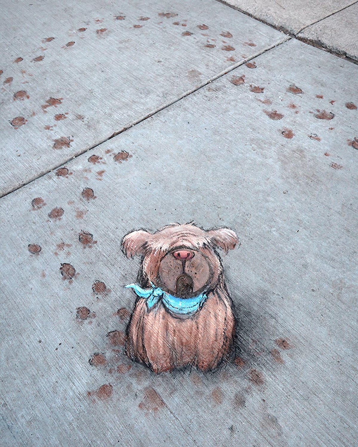 Bazı sanatçılar tuval üzerine resim yapmaktan hoşlanırken, David Zinn gibileri sanat icra etmek için beklenmedik yerler arar. Sanatçı, bazen kaldırımlara, bazen tuğla duvarlarda ve daha fazlasında, çoğu zaman gerçek yaşam unsurlarını (çimentodaki çatlaklar gibi) resme dahil ederek tebeşir sanatı yapıyor. Zinn, kendine özgü, karikatürü andıran tarzında bir dizi ilginç hayvan karakteri çiziyor. Her birinin çevredeki ortamla etkileşime giriyormuş gibi görünmesi için özenle işliyor.