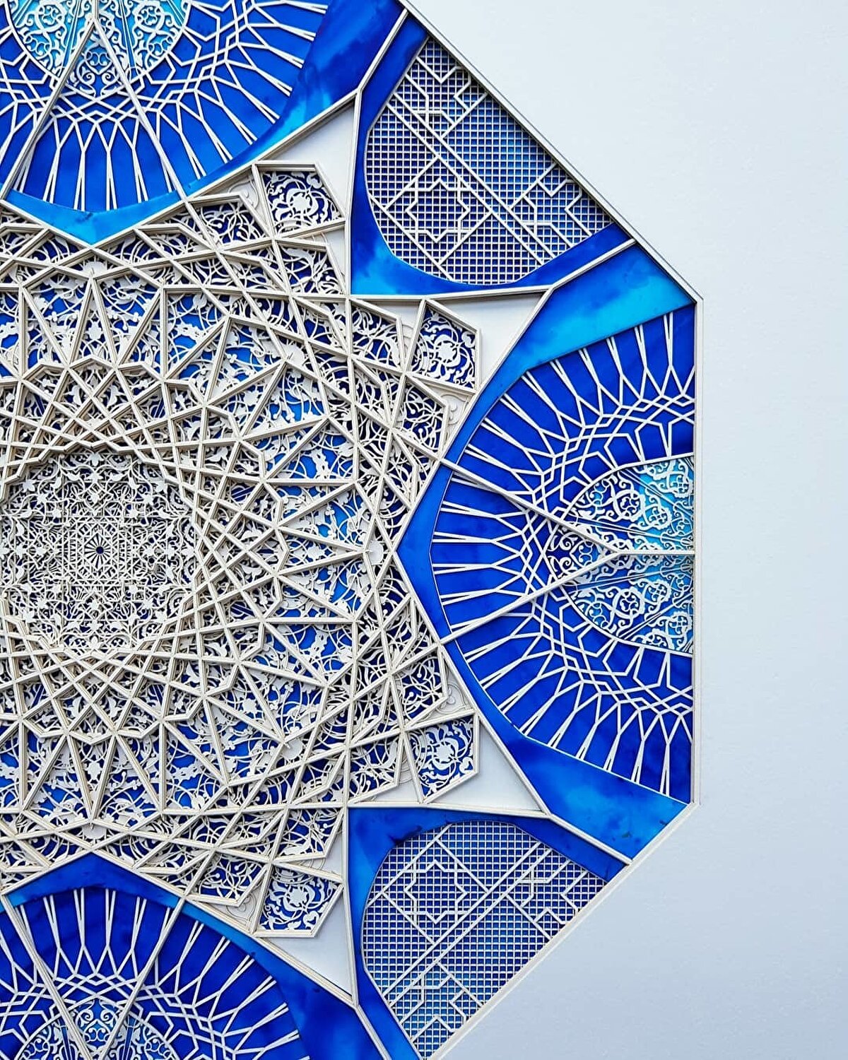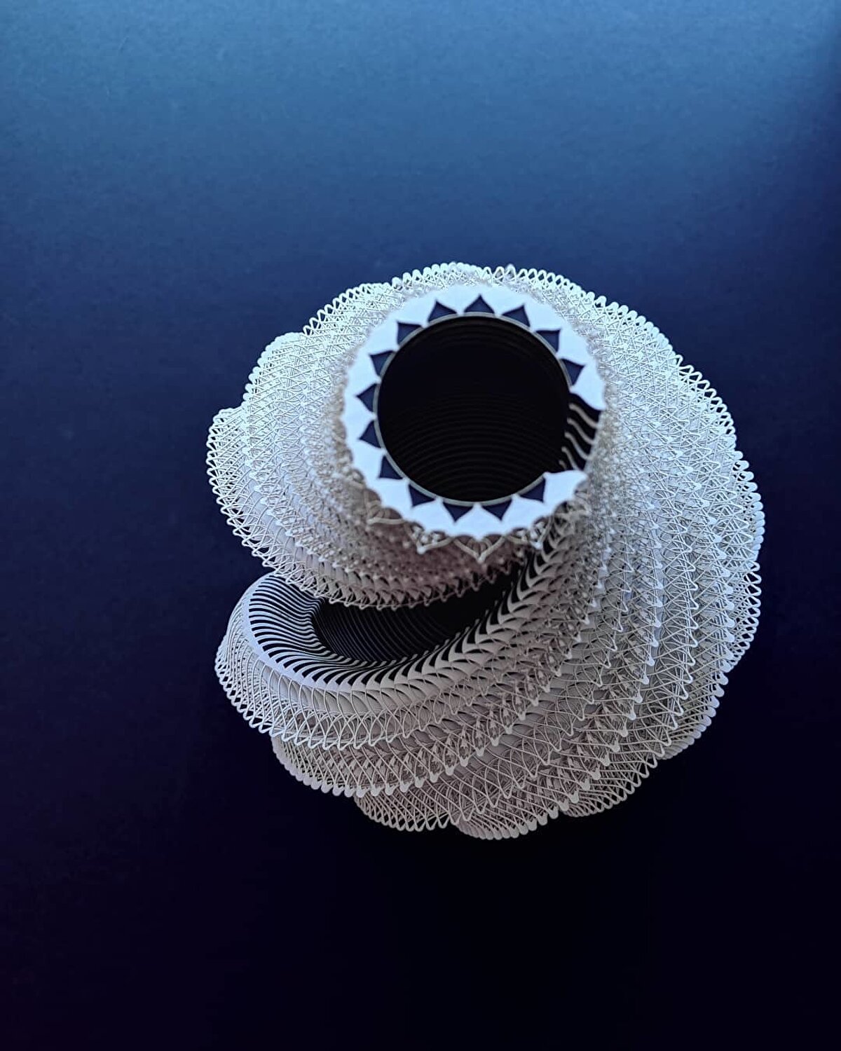 Her bir eser önce elle çiziliyor, ardından motifler tasarlanan şekle uyarlanmak için algoritma ve dijital tasarım aracılığıyla geometrik desenlere dönüşüyor. Son adımda her bir parça lazer kesim yapılarak elde edilen kağıt katmanları tek tek el işçiliğiyle birleştiriliyor. Tasarımcı Ibbini, el işçiliğinin doğasıyla gelen kusurların eserleri daha güzelleştirdiğini ifade ediyor. Son derece ayrıntılı ve hassas bir çalışma ve işleme gereken bu kağıt sanatında dijital ve analog tasarım bir arada.