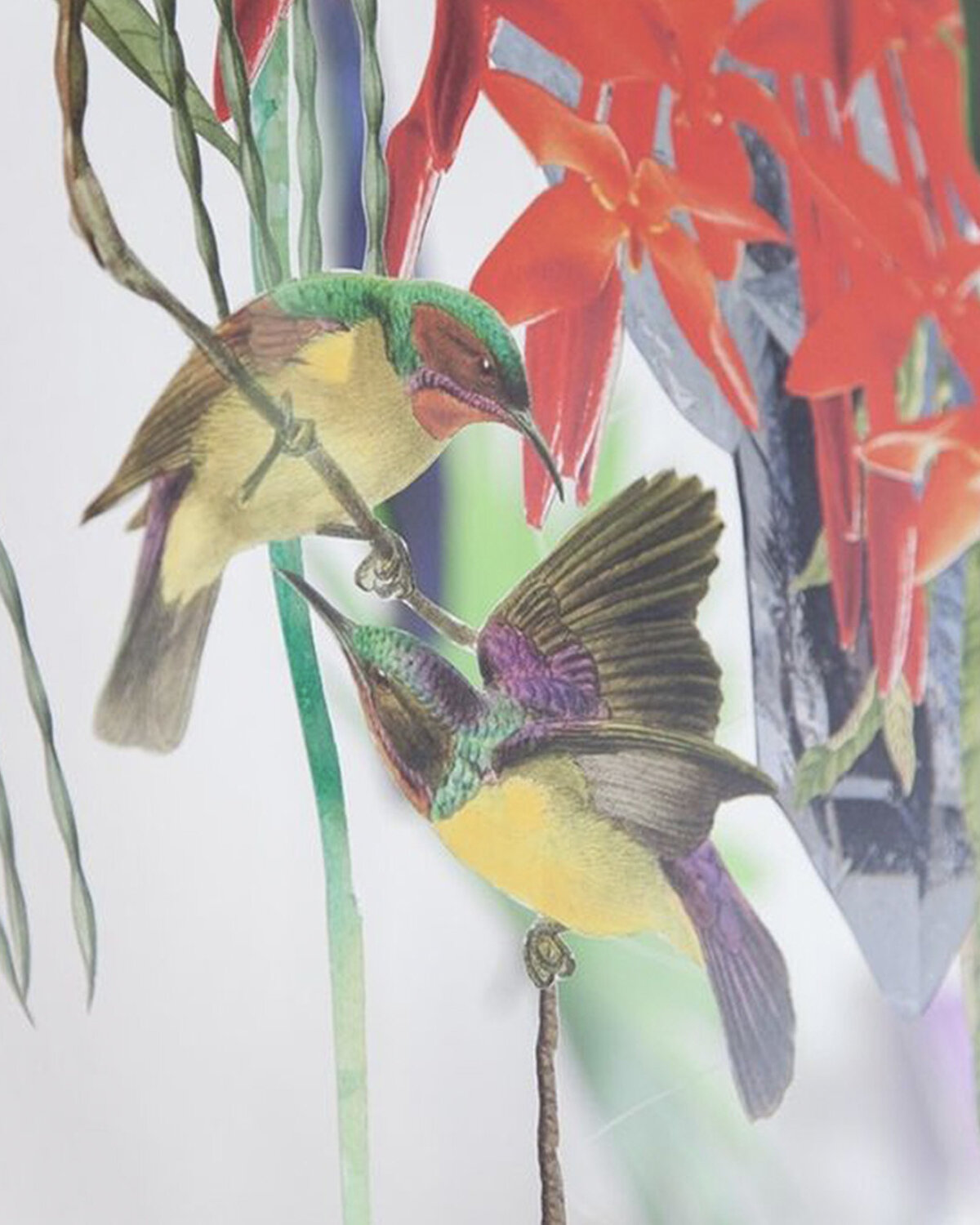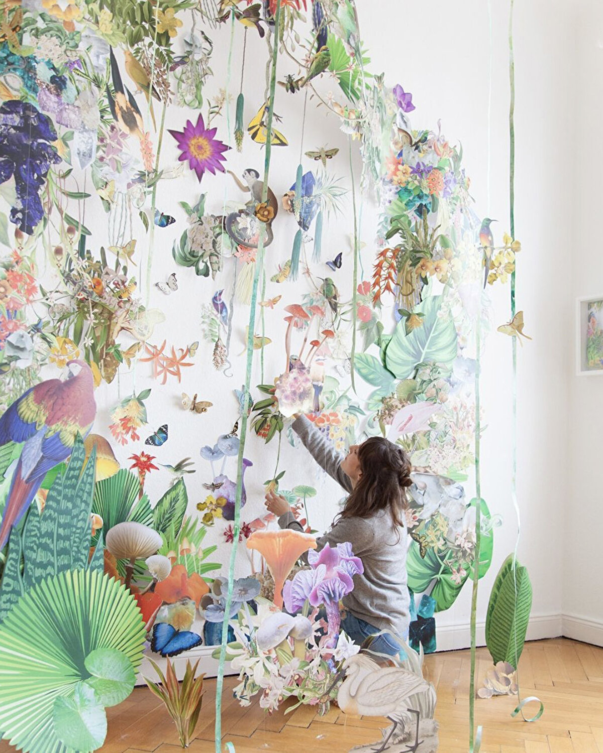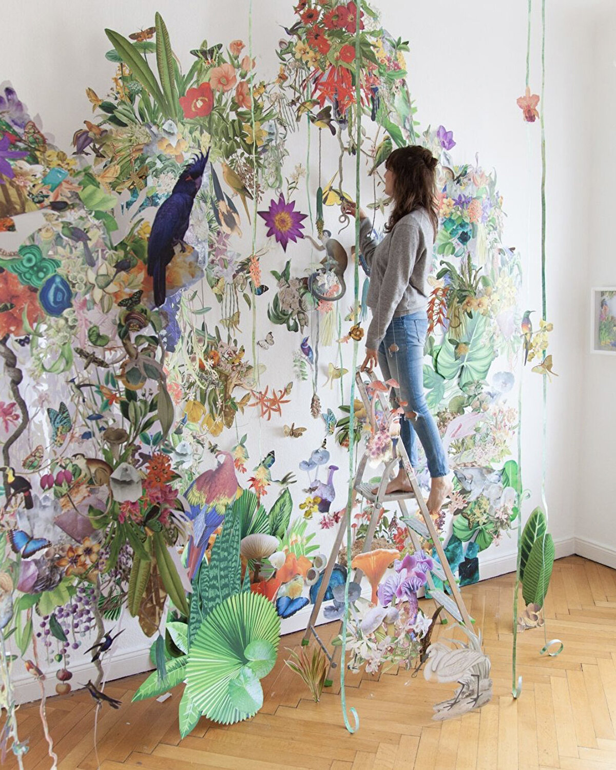 Çevreci ve kolaj sanatçısı Clare Celeste (@clarecelesteart), ekosisteme ve doğaya dikkat çeken sürdürülebilir çalışmalar yapıyor. Aslen Brezilyalı olan sanatçı, Berlin'deki evinde yaptığı çalışmalarla gezegenimizin korunmasının öneminin altını çiziyor. Clare, sanatıyla izleyicilerin yaşadıkları dünya ile ilişkilerini yeniden canlandırabilecekleri bir alan oluşturmayı amaçlıyor. Bunu yaparken elle kesilmiş bitki ve hayvan figürleri kullanan sanatçı, ekosistemimizin çeşitliliğini vurguluyor. Hem çeşitliliği hem de doğanın güzelliğini vurgulamak için de kompozisyonlarında parlak ve canlı renklerde dokular kullanmayı tercih ediyor.