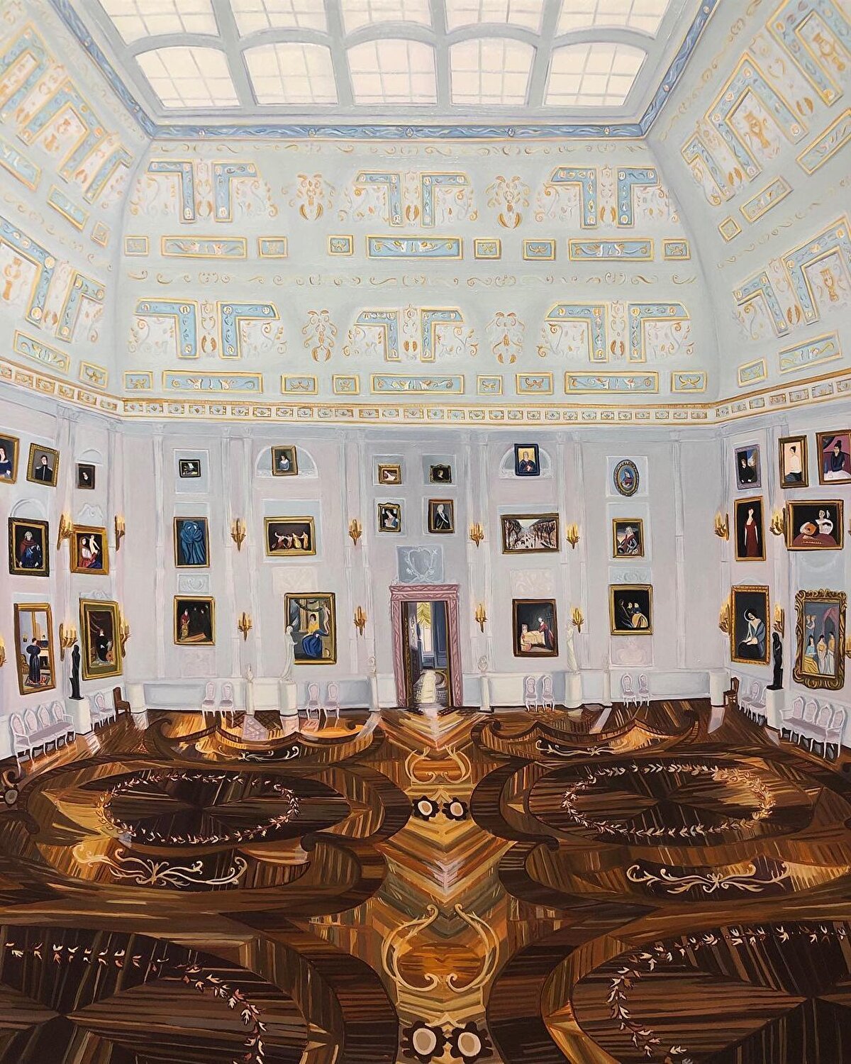 📌 Sanatseverleri galerilerin, müzelerin ve tarihi mekanların içlerinde adeta gezintiye çıkaran birinden bahsedeceğiz bugün. Gretchen Scherer, duvarları resimlerle dolu tarihi iç mekanları resimliyor. Brooklyn'de yaşayan sanatçı; barok nişleri, freskli tavanları ve sanat koleksiyonlarını detaylıca eserlerine aktarıyor. Hem yağlı boya hem akrilik boya kullanımında usta olan Scherer için en önemli detay ise duvarların ve tavanların resim veya heykellerle kaplı olması. Bir arkadaşının ona janr tarihi hakkında kitap hediye etmesinin üzerine etkilenen ressam, iç mekanları çalışmalarına dahil etmeye başladığını söylüyor ve şu ifadelerle de sanatının ona hissettirdiklerini paylaşıyor: “Bu eski yerler şu anda yaşadığımız alanlara çok yabancı geliyor, başka bir dünya gibiler. Mekanların içi boş ancak o zamanki insanlar sanki her an odaya geri dönebilirlermiş gibi hissettiriyorlar." Bizi resim içinde resimlerle zaman yolculuğuna uğurlayan bu eserler size neler hissettiriyor?