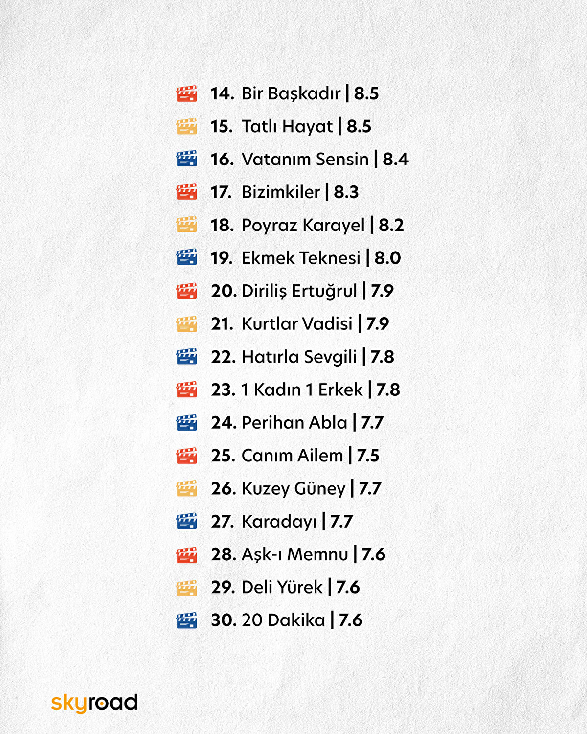 Türk televizyon tarihinin en unutulmaz ve en beğenilen dizilerini IMDb puanlarına göre listeledik! 🎬 Duygusal dramalardan sürükleyici suç hikayelerine, efsane komedilerden aksiyon dolu maceralara kadar her türden dizi bu listede.