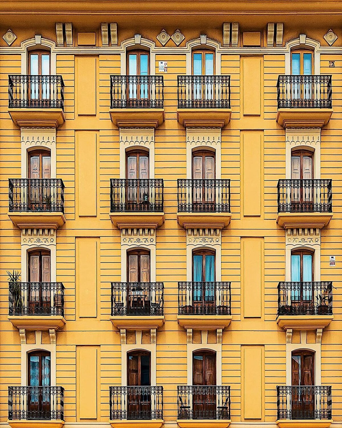 📌 Sanat ve bilişim şehri Valencia'nın göz alıcı apartmanları fotoğrafçı @frankrg_17 bakış açısı ile etkileyici çalışmalara dönüşüyor. Sanat ve mimarlık ilişkisinde; sanat, estetik bir olgu ve yaşantı, mimarlık ise bu olgu ve yaşantı için oluşturulan bir mekan ve çevredir. Valencia'nın Kraliçe Meydanı'ndaki bu sarı apartman da sanat ve mimarlığı estetikte birleştirerek bir uyum sağlıyor.