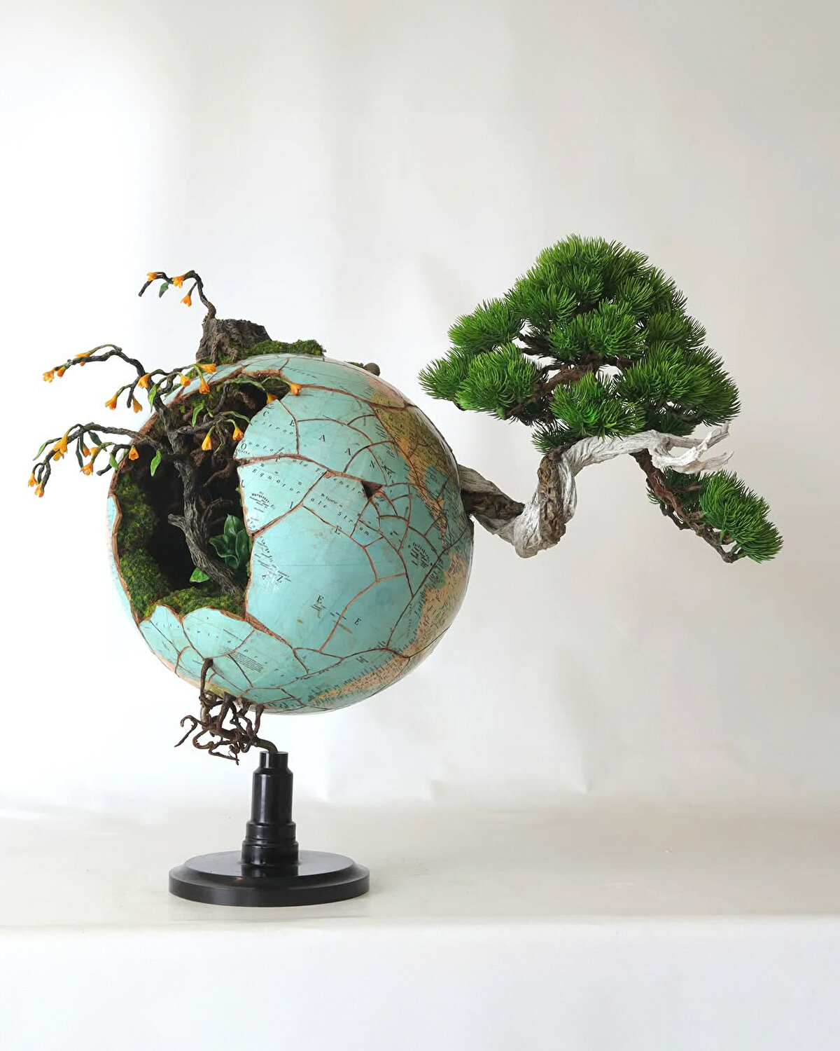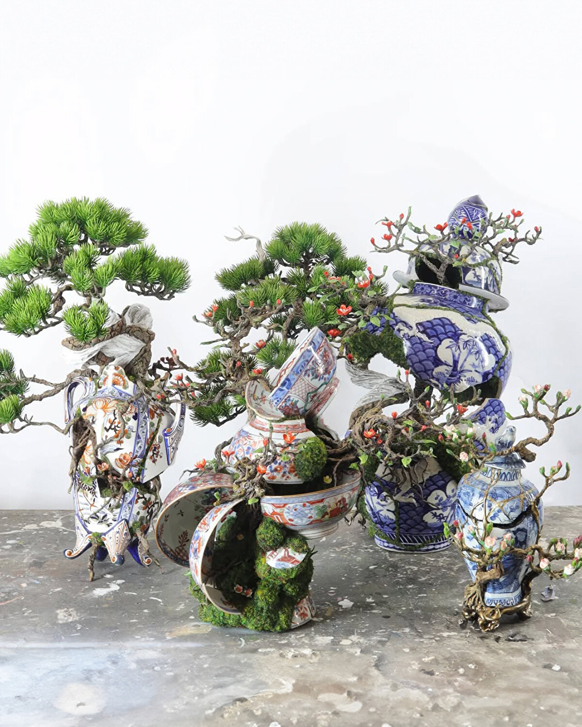 Hollandalı heykeltıraş Patrick Bergsma, seramik vazoların sınırlarını zorlayan canlı bonsai heykeller yapıyor.