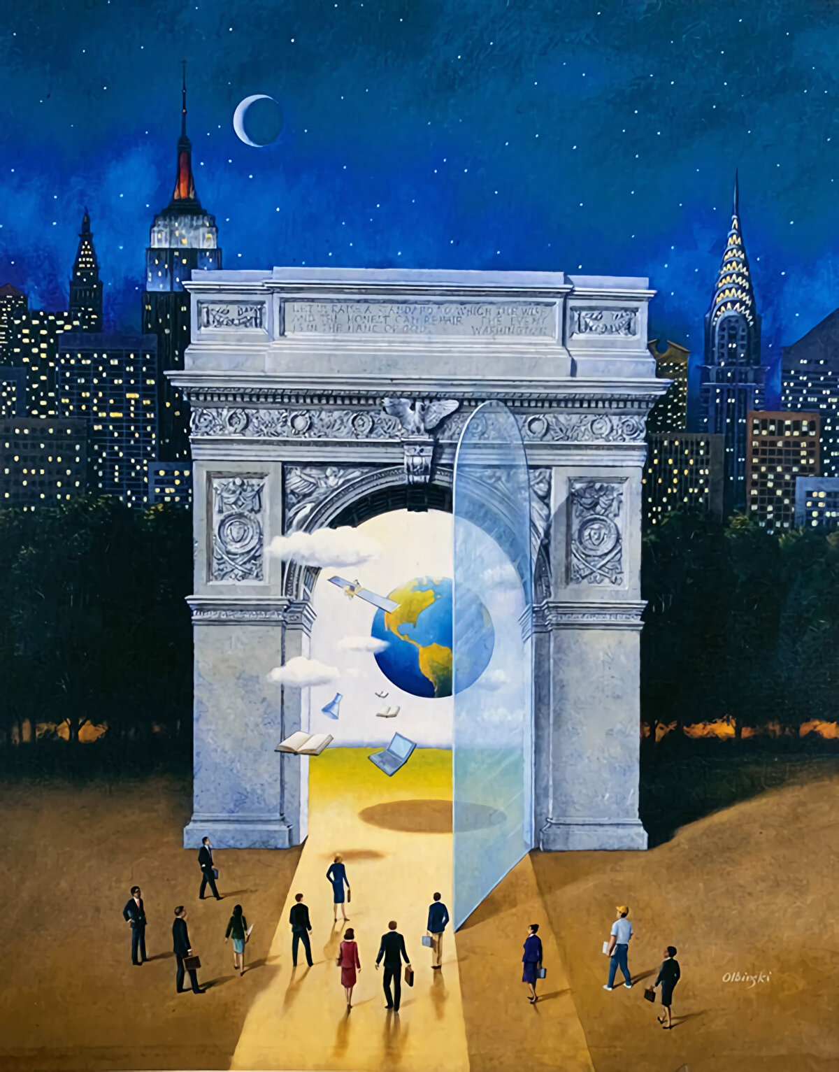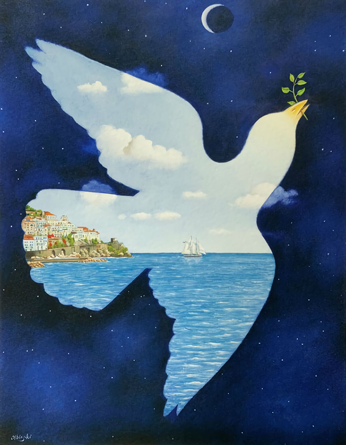 📌 Polonyalı illüstratör Rafal Olbinski, Varşova'da Mimarlık okuduktan sonra 1981'de ABD'ye göç etti. Burada kısa bir süre içinde ressam, illüstratör ve tasarımcı olarak çalışmaya başlayan Olbinski, resim ve illüstrasyon çalışmalarını "şiirsel gerçeküstücülük" olarak tanımlıyor. Eserleri New York, Washington, Japonya ve Avrupa'da sergilenmeye devam ederken; Olbinski, New York City'deki Görsel Sanatlar Okulu'nun fakültesinde çalışmalarına devam etmekte.