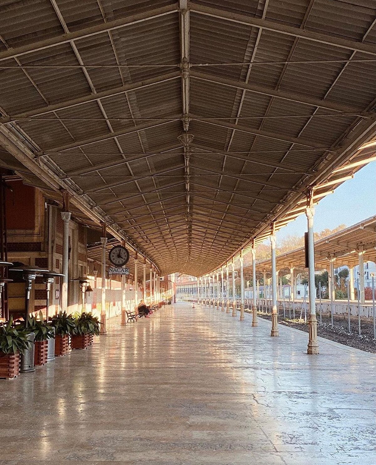 Sirkeci Garı'nı Berlin Üniversitesi mezunu mimar ve mühendis Alman Jasmund tasarlar; inşaatı ise demiryolunu işleten şirket tarafından yapılır. Jasmund, şark mimarisi üzerine incelemeler yapmak için İstanbul'a gelir; Sultan'ın güvenini kazanınca da sarayın danışman mimarı olarak görev yapmaya başlar. Açılış töreninde hazirun önce trenle Sirkeci'den Ahırkapı Feneri'ne götürülür, sonra düdük çala çala Sirkeci'ye geri gelir.⠀ ⠀ 📌 Sirkeci Garı'nda gezmek için bilmemiz gerekenlerin konuların başında ise elbette "oryantalizm" gelmekte. Mimar Jasmund gar binasının projesi hazırlanırken özellikle bir nokta üzerinde durmuştu: İstanbul, batının bitip Doğu'nun başladığı yerdi. Bu şu demekti: İstanbul, Doğu ile Batı'nın birleştiği noktaydı. Bu nedenle bina oryantalist bir üslupla hayata geçirilmeli, bölgesel ve ulusal biçim kalıplarına yer verilmeliydi. Bu üslubu yansıtmak için cephelerde tuğla bantlar kullanılmıştı. Sivri kemerli pencereler, ortaya ise Selçuklu dönemi taş kapılarını anımsatan geniş bir giriş kapısı yaptırıldı. Vitraylar bu üslubu tamamlıyordu. Binanın kidesi granit, cephesi mermer ve Marsilya Arden'den getirilmiş taşlarla yapıldı. Bekleme salonlarına, Avusturya'dan getirilmiş büyük çini sobalar konuldu. Binanın aydınlatılması ise çeşitli yerlere konulan 300 havagazı feneriyle sağlandı.⠀ ⠀ Harika fotoğraflar için @oitheblog 'a teşekkürler! ✨⠀
