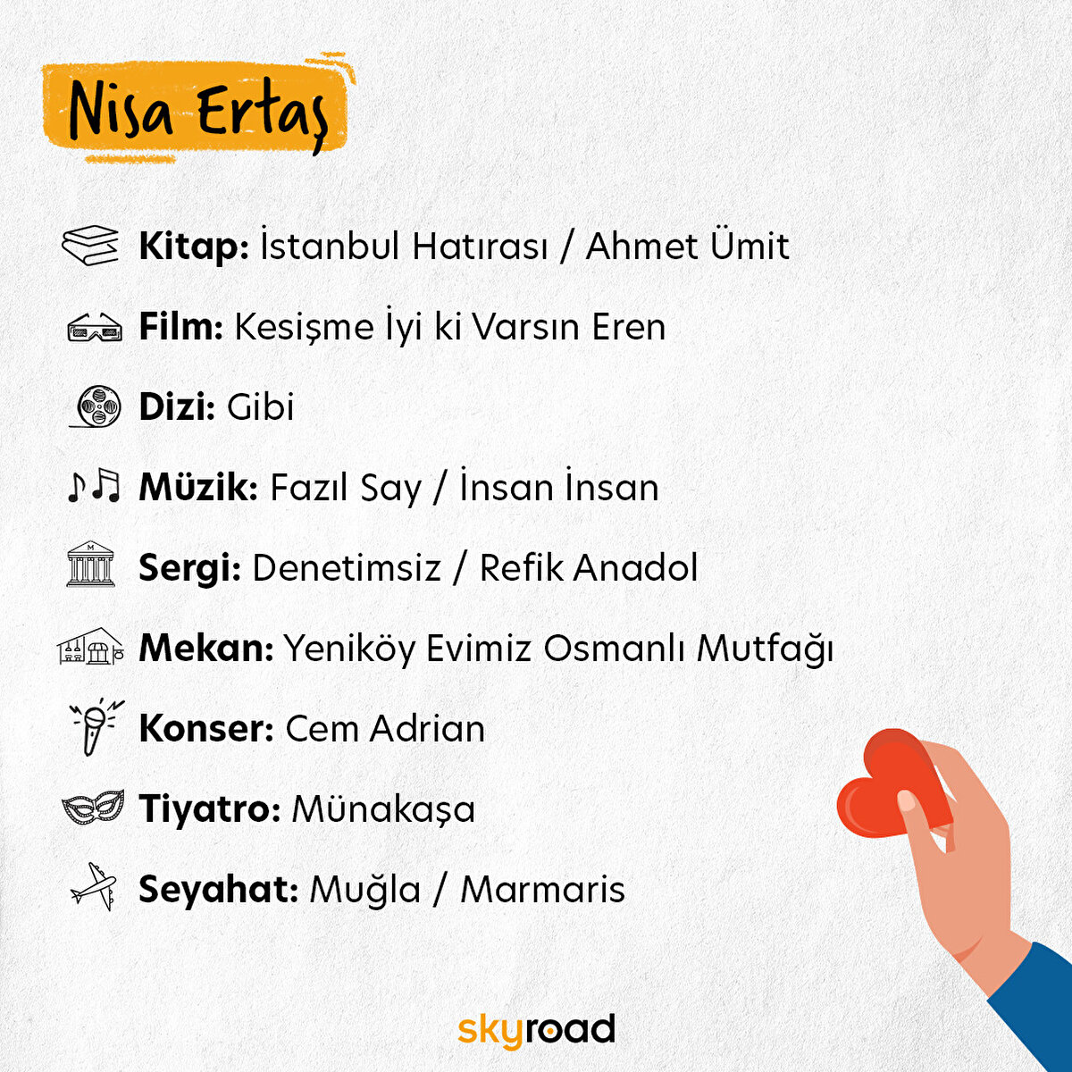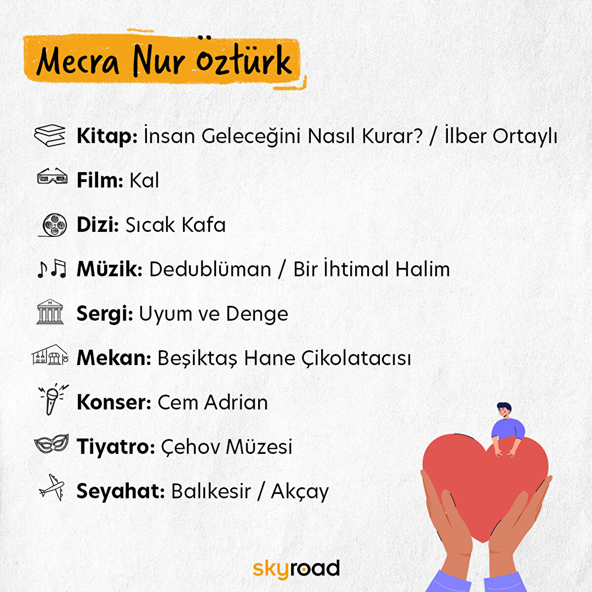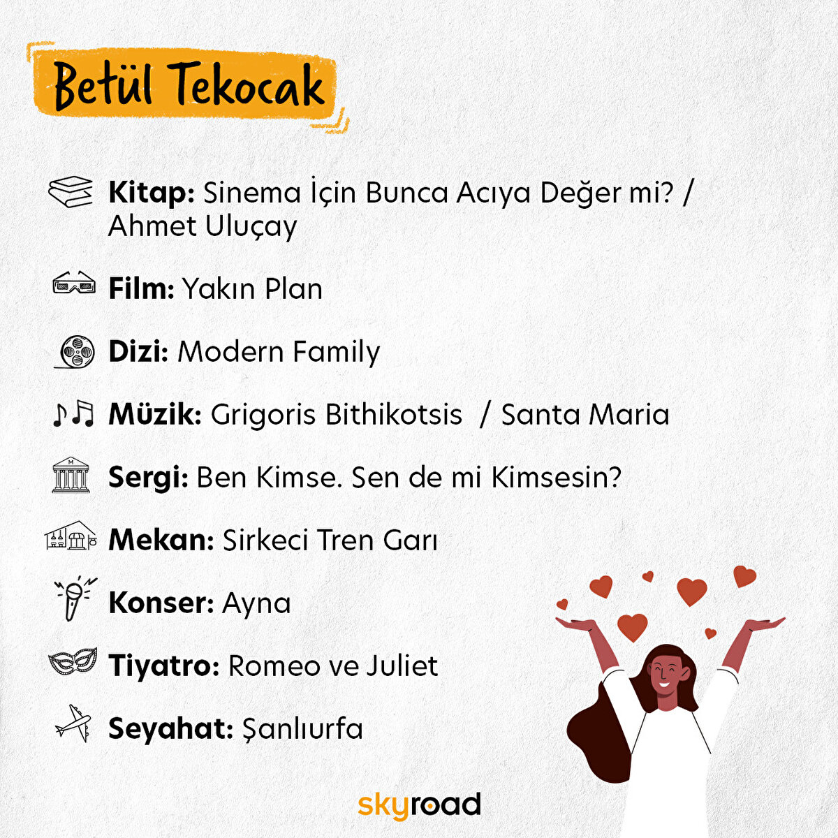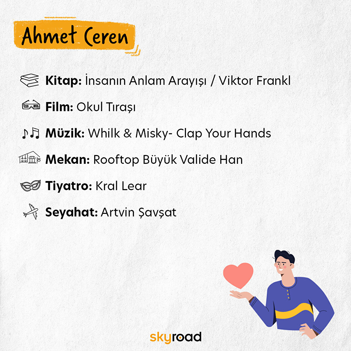📌 Skyroad ekibi olarak yıl boyunca pek çok şey önerdik. Editörlerimizin kimisi kültür-sanat haberlerini derlerken kimisi sinema içerikleri hazırladı, kimisi sergi gezerken kimisi psikoloji hakkında içerikler yaptı. Peki tüm bu içerikleri çıkaran Skyroad editörlerinin enlerini öğrenmeye ne dersiniz?