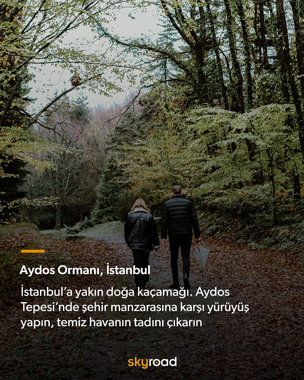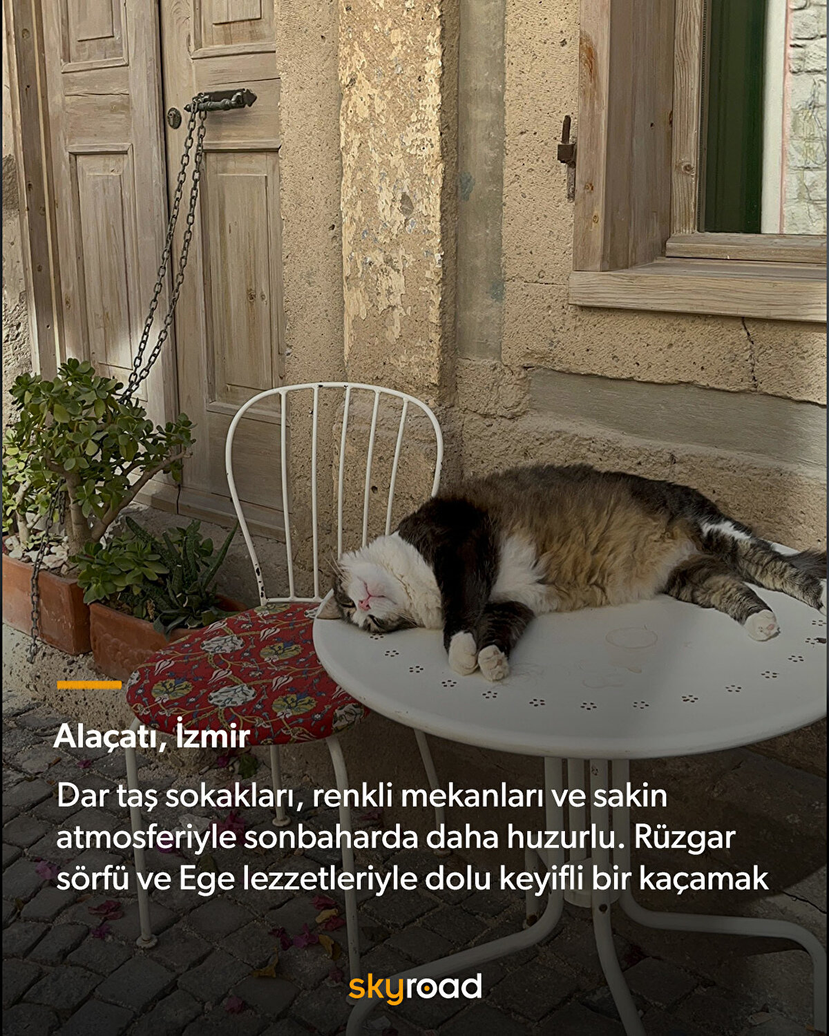 İzmir'in sakin kasabası Alaçatı, taş sokakları ve Ege'ye özgü lezzetleriyle sonbaharda daha huzurlu bir atmosfere bürünüyor. Rüzgar sörfü yapmak ya da renkli mekanlarda keyifli anlar geçirmek için ideal. İstanbul'a yakın olan Aydos Ormanı ise şehirden uzaklaşmak isteyenler için doğal bir sığınak. Aydos Tepesi'nden İstanbul manzarasını izleyerek temiz havanın tadını çıkarabilirsiniz.