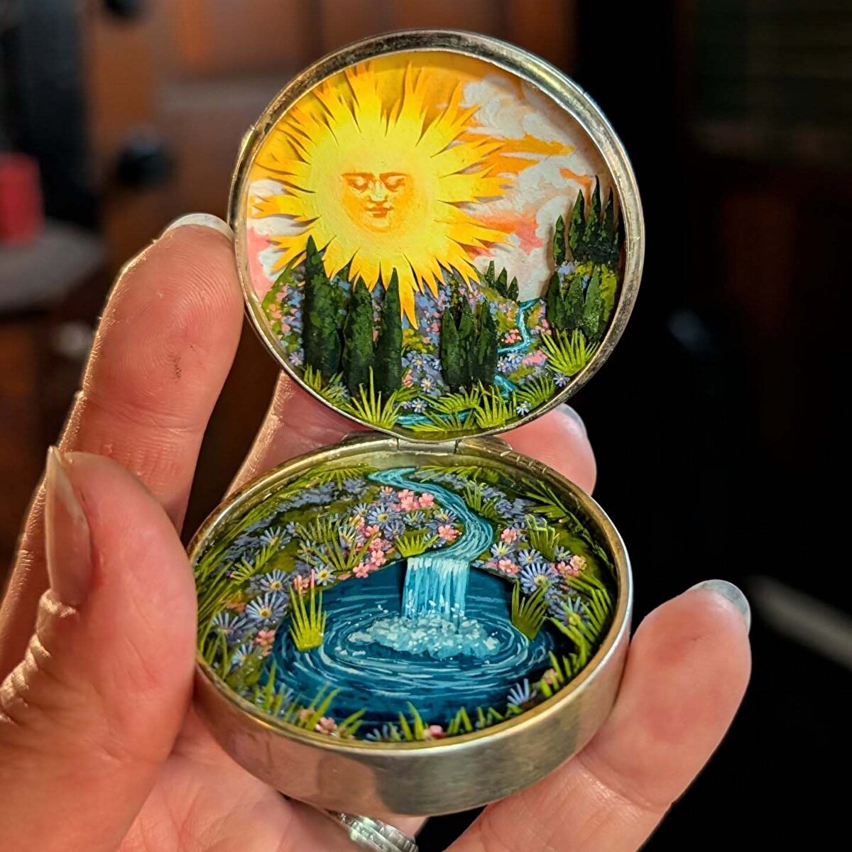 Sanatçının işlerinde geçmişin izlerini modern bir yaklaşımla yeniden yorumlaması dikkat çekiyor. Eski kozmetik kutuları gibi antika objeler, onun ellerinde yeniden can buluyor. Bu minyatür dioramalar, yıllar içinde unutulmuş hikayeleri ince suluboya katmanlarıyla yeniden şekillendiriyor. Her bir parça, nostaljik bir yolculuğun modern bir anlatımı gibi izleyiciyi kendi hikayesini keşfetmeye davet ediyor. Shannon Danielle Taylor'ın sanatı, geçmiş ile bugünü büyüleyici bir zarafetle bir araya getiriyor.