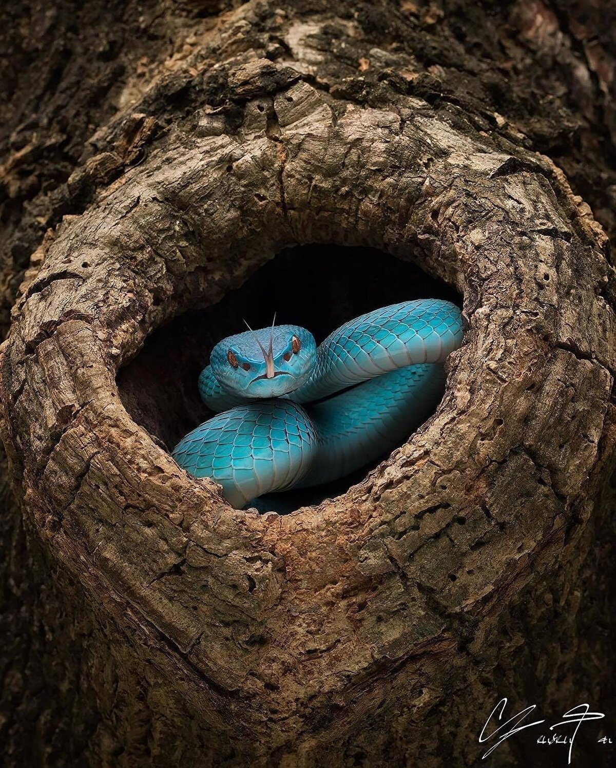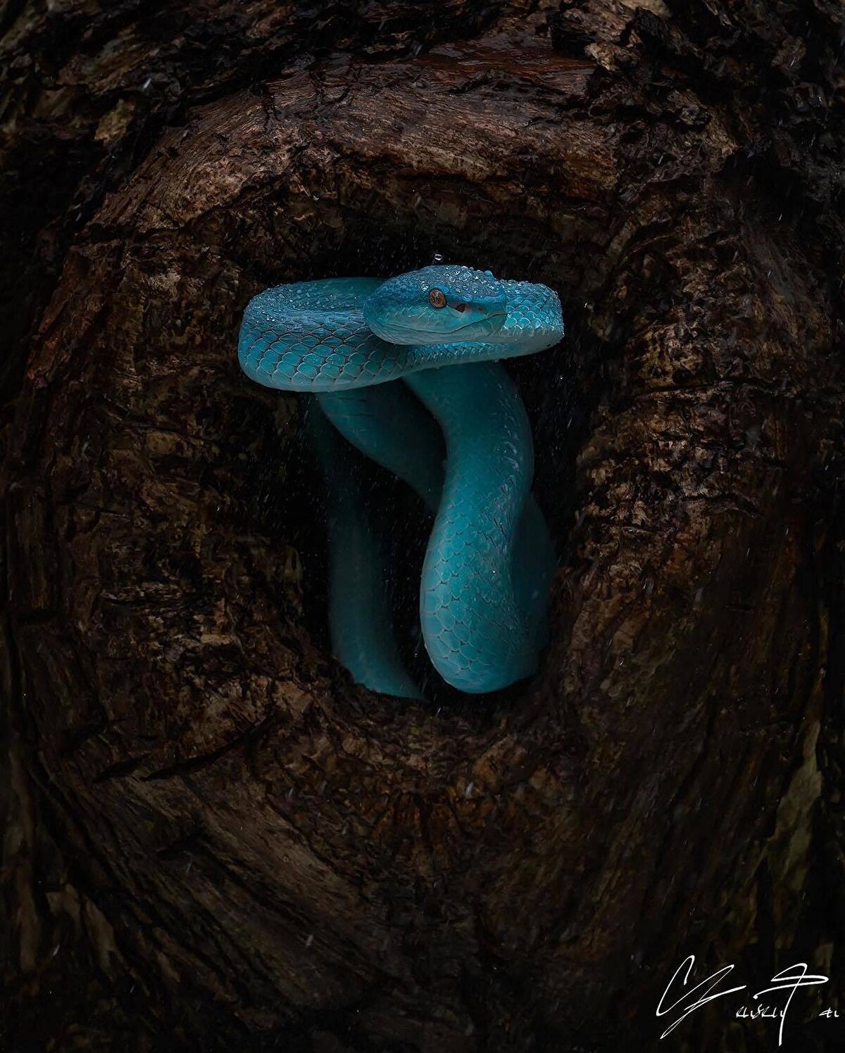 📌 Hem doğa hem de doğanın içindeki doğal yaşam, bu dünyadaki en büyüleyici şeyler olabilir. Her ne kadar ürkütücü görünse de bizce bu sessiz katilin de büyüleyici bir tarafı da var. Vaktinin çoğunu ağaçlarda dinlenerek geçiren beyaz dudaklı yeşil ağaç engereği (Trimeresurus albolabris), dinlendiği vakitte karşısına çıkan avına karşı oldukça kıvrak ve hızlı olabiliyor. Güneydoğu Asya ormanlarında yaşayan bu yılan türü, 1 metreye yakın boyu ve 1 kilograma yakın ağırlığı ile kendisinden hiç beklenmeyecek bir performansla, bir insanı zehriyle yaklaşık 2 saat içerisinde öldürebilir. Memeliler, kuşlar, omurgasızlar ve balıklarla avlanan bu tür, çoğu zaman kendisinden büyük yırtıcıların avı konumunda da olabiliyor.