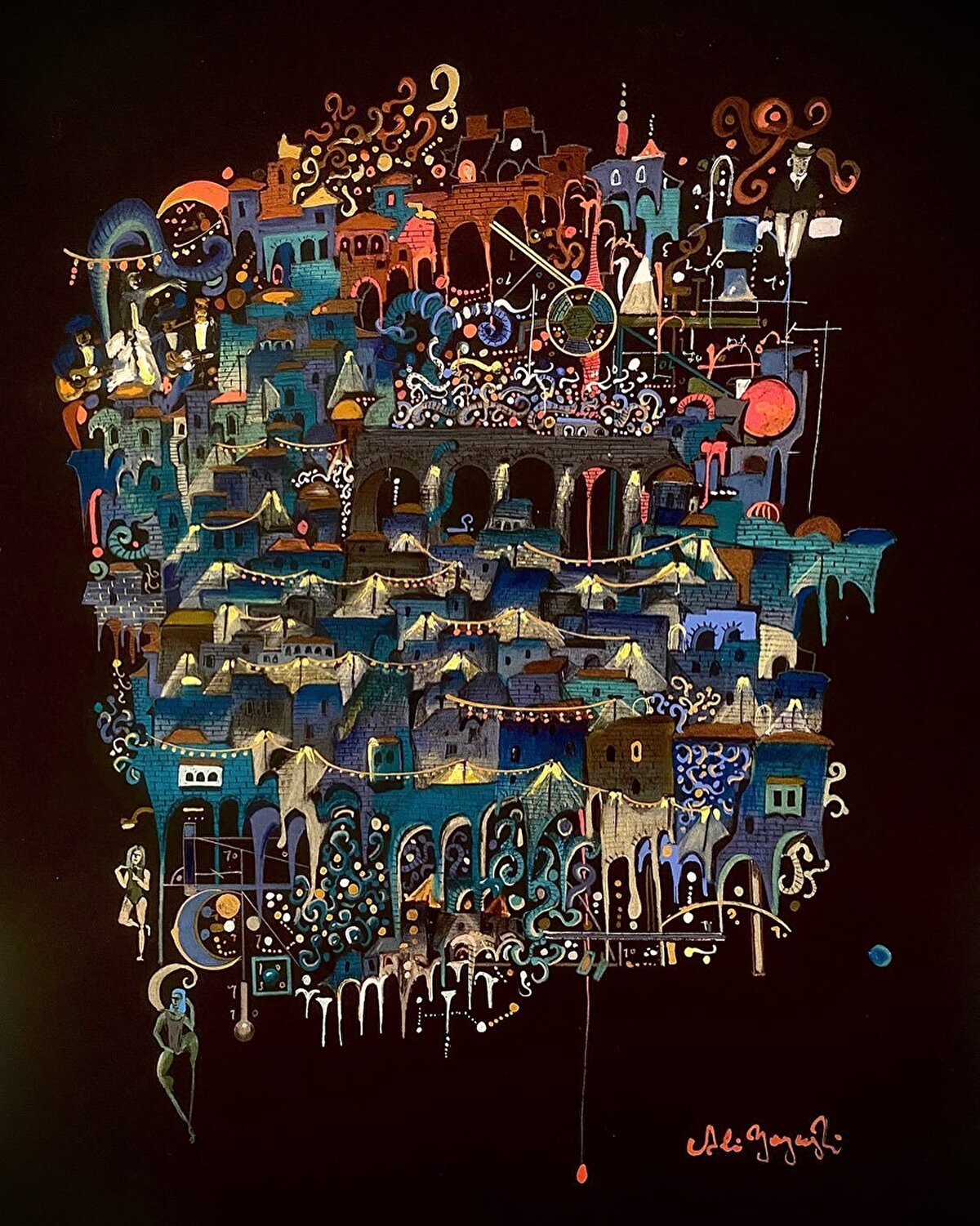 📌 Ressam Ali Yaycıoğlu aslında Stanford Üniversitesi Tarih Bölümü'nde öğretim üyesi ve asistan profesör olarak görev alıyor. Osmanlı Tarihi, Orta Doğu, Güney Doğu Avrupa ve Türkiye tarihi üzerine dersler veren Yaycıoğlu, Orta Doğu Teknik Üniversitesi'nde Uluslararası İlişkiler Bölümü'nde okuduktan sonra Bilkent Üniversitesi'nde Halil İnancık'ın danışmanlığında Osmanlı Tarihi çalıştı. Sanatçının resimle olan ilişkisi ise Eşref Üren'den aldığı eğitimle başlayıp Osman Zeki Oral'dan aldığı derslerle devam etti. Bu süreçte ailesinden de destek gördü.