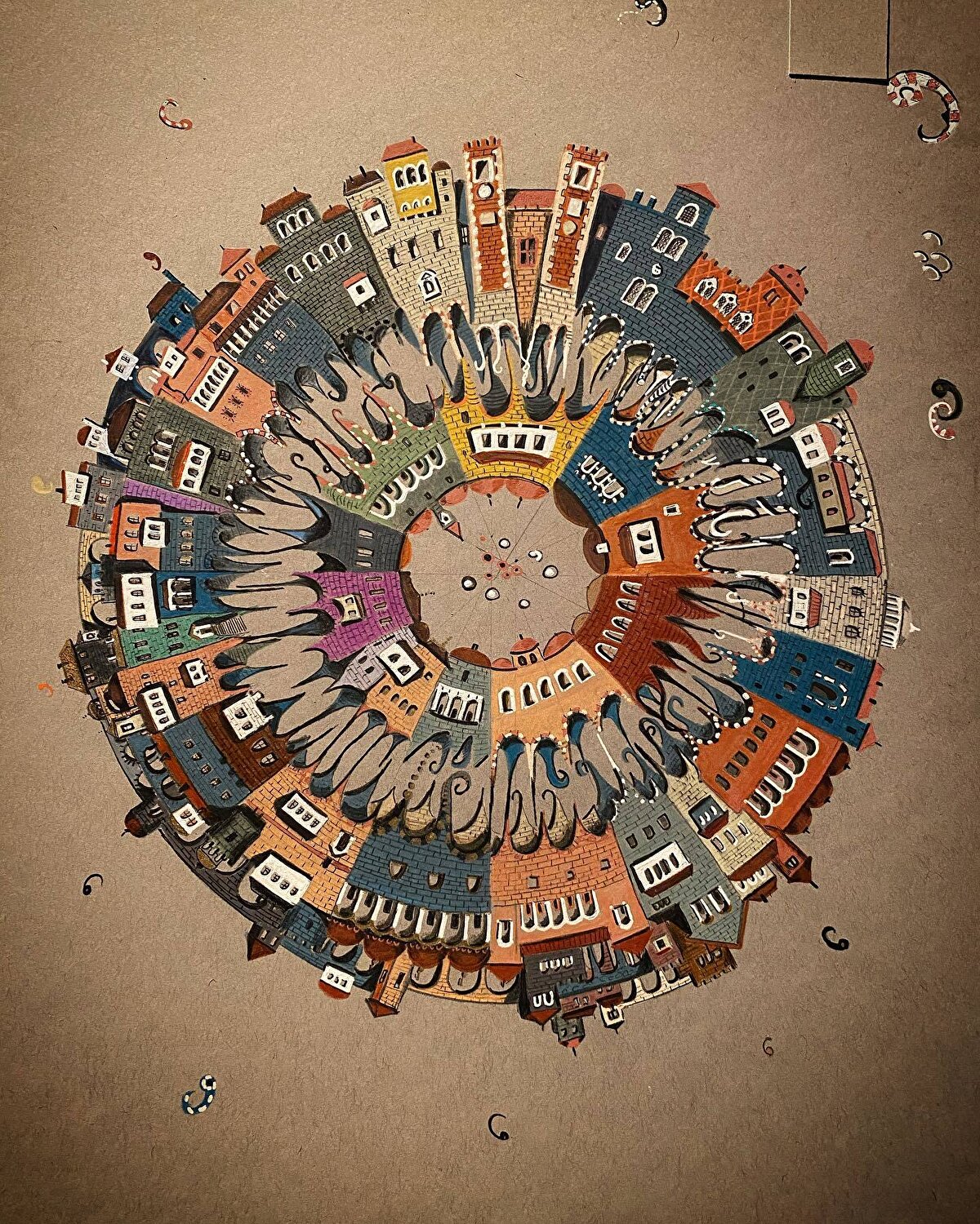 Sanatçının çalışmaları mekan ve zaman kavramlarını barındırmasıyla ¨minyatür mü¨ diye düşündürse de bu resimler tarihçinin geçmişten ve şehirlerden esinlenmesiyle ortaya çıkıyor. Resimle olan bağını ¨bir görme, düşünme, hayal kurma, varoluş¨ biçimi olarak tanımlayan sanatçı, tarih ve resim arasında ilişki kurduğunu ifade ederek şu sözlerle açıklıyor; ¨Tarih çalışırken, mekana ve zamana bağlıyım. Tarihçinin görevi zaten mekan ve zamanın kesiştiği hikayeleri ya da olguları yakalamak. Resim yaparken ise tüm derdim, mekan ve zamandan bağımsızlaşmak. Bir anti-tarih!¨