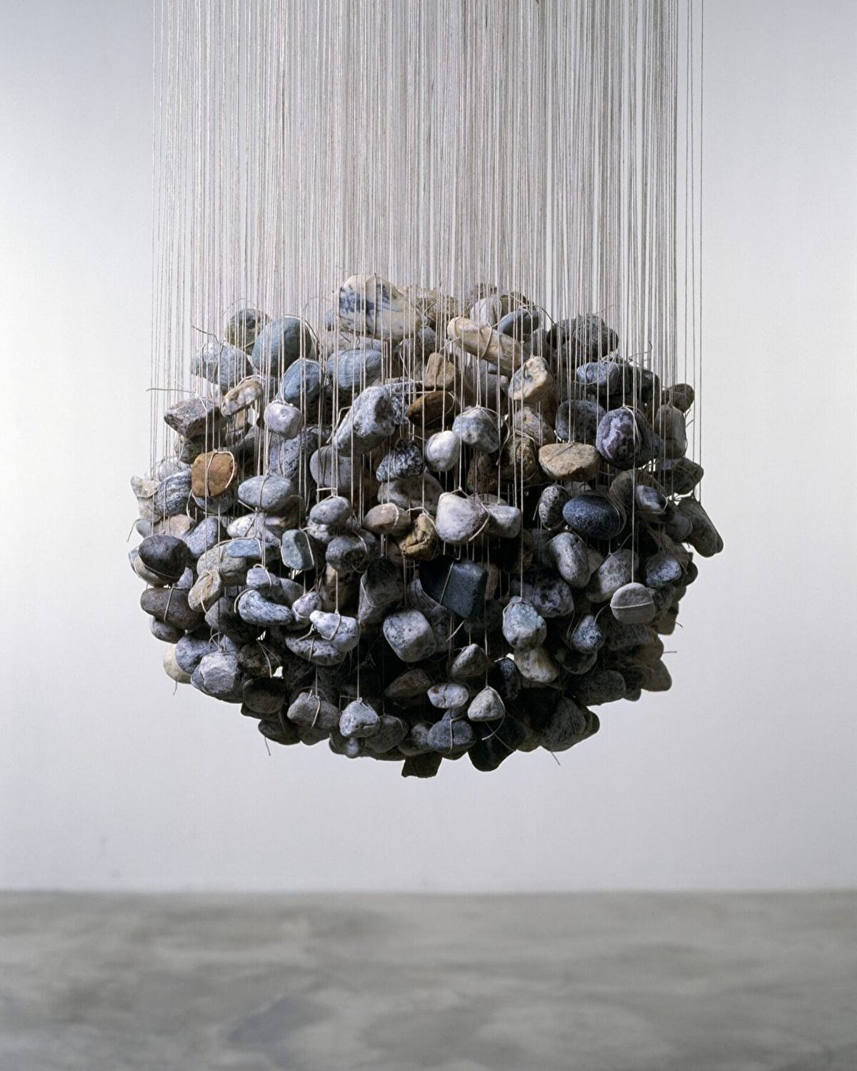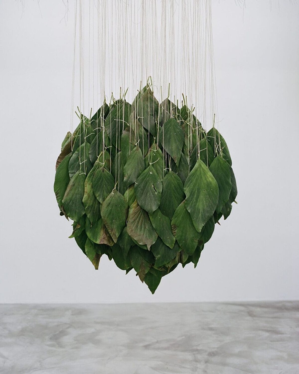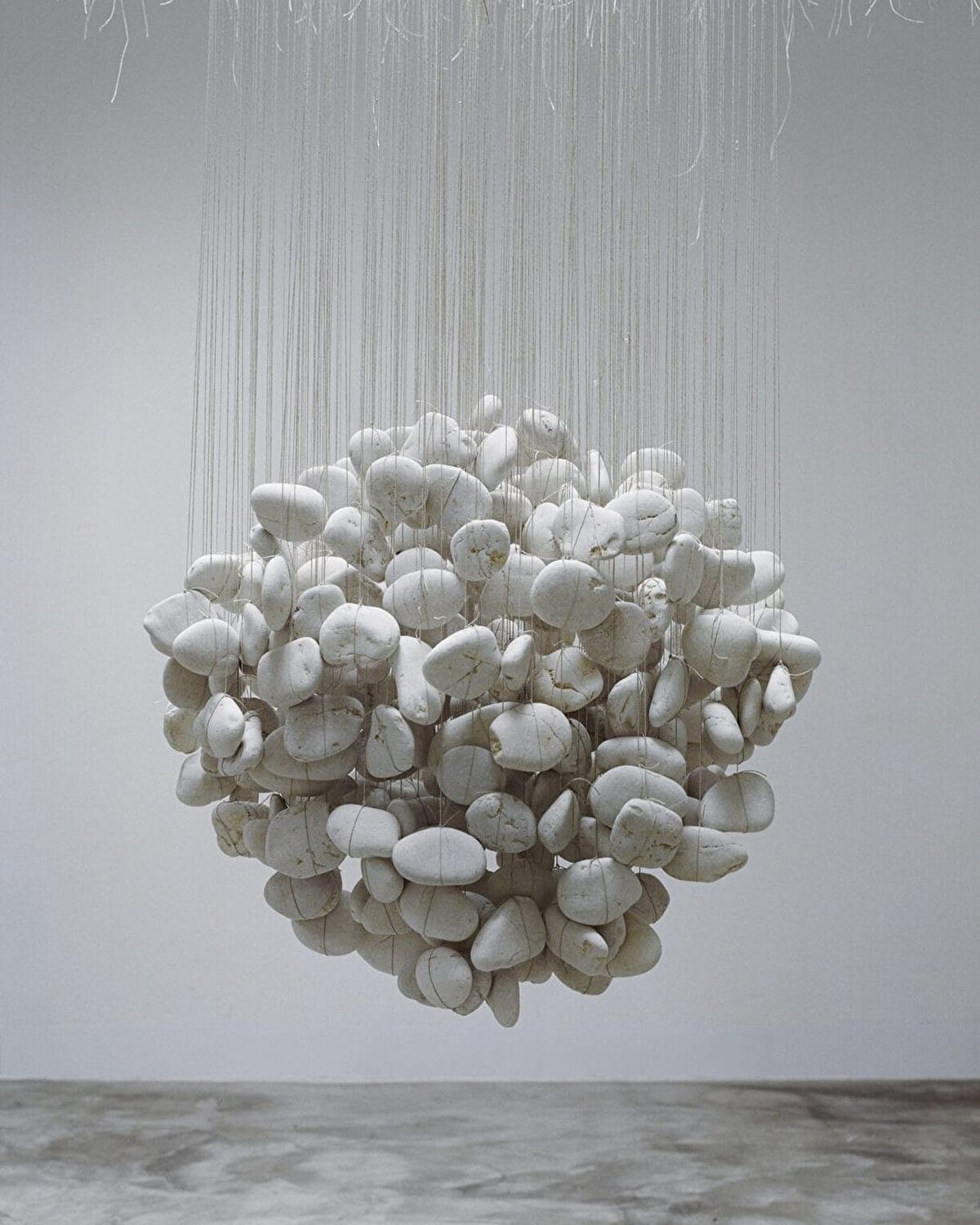 Fransa Écrins Milli Parkı'nda sık sık yürüyüş yapan sanatçı @reinkooyman, doğadan ilham alarak yerde duran yaprak ve taşları biriktiriyor. Sanatçı, taşlardan büyük yapraklara, kıvrık ağaç kabuklarından iplere kadar birçok malzemeyi sıra dışı formlarda sunuyor. Doğal malzemelerin iplerle havaya asıldığı dairesel şekiller, farklı parçalarla birleşerek sanat eserlerine dönüşüyor. Yaklaşık dört kilometre uzunluğunda ip kullanarak 2 bin taşı havada asılı hale getiren Kooyman, doğadaki parçaları geri dönüştürerek yeni bir anlam kazandırıyor. Her yürüyüşte koleksiyonuna yeni parçalar ekleyen sanatçı, bu malzemeleri sarkıt avize benzeri formlara dönüştürüyor.