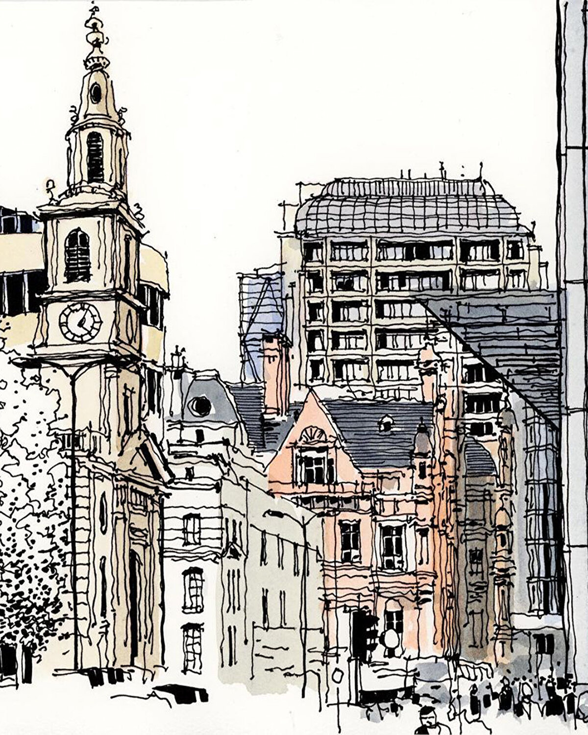 İngiltere'de yaşayan ve grafik tasarım alanında eğitim almış olan tasarımcı Phil Dean (@shoreditchsketcher), kentlerin eskizlerini çiziyor. Başından beri canlı ve yerinde çizimler yapan sanatçı, dışarı çıkıp kentsel manzaraları yakalamayı ve onları o anda çizmeyi seviyor. Phil, yaşadığı şehrin ve Los Angeles, Malaga, Floransa, Paris sokakları gibi seyahat ettiği bütün şehirlerin sokaklarında eskiz çiziyor. Sanatçı, izleyiciyi sahneye bağlayan bir çizim için bazen bir fotoğrafın yapabileceğinden daha etkili ve daha duygusal bir şey olduğunu düşünüyor. Londra'da yaşıyor olmasının çizim tutkusunu alevlendirdiğini söyleyen sanatçı, '' Dışarda çok fazla zaman geçiriyorum, sokaklarda dolaşıyorum ve her zaman yanımda bir eskiz defteri taşıyorum. Londra gibi bir şehirde olmak mimarisi ve telaşıyla bana çok fazla ilham veriyor.'' diye de ekliyor.