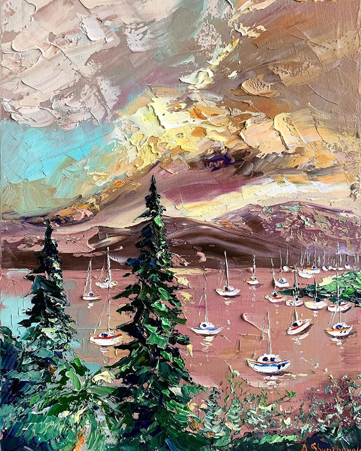 Estonyalı sanatçı Alena Shymchonak, karla kaplı dağlardan, Avrupa'nın bir sahilinin sıcak kumlarına kadar nostaljik yerleri çağrıştıran manzaralar ortaya çıkarıyor.