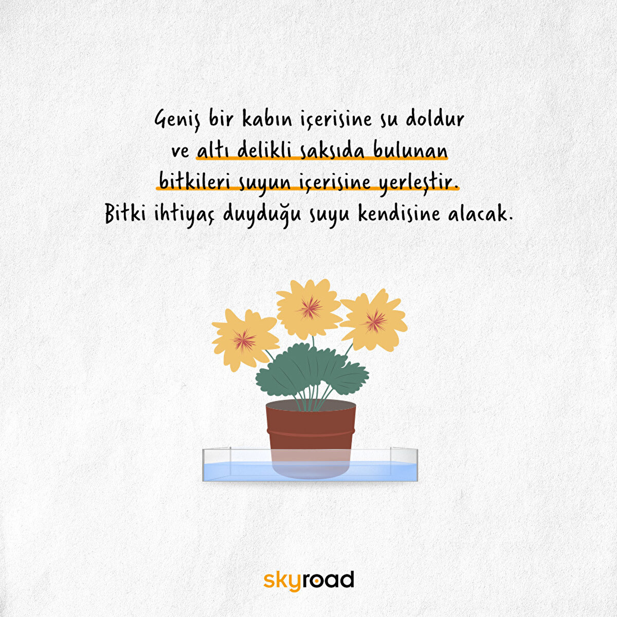 Yazın gelmesiyle birlikte tatil planları yapılmaya başladı. Ev ve ofislerimizde sıklıkla yer verdiğimiz bitkileri tatile giderken maalesef yanımıza alamıyoruz. Çoğu zaman uzun tatil planlarında yakın çevremize emanet ettiğimiz bitkileri susuz kalmadan evlerimizde gönül rahatlığıyla bırakabiliriz. Bitkinizin türüne ve su ihtiyacına göre uygulayacağınız bu küçük adımlarla aklınız bitkilerinizde kalmadan tatilinizin tadını çıkabilirsiniz.