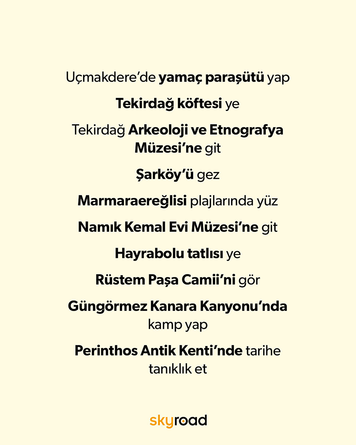 Senin Tekirdağ'da yapmayı en çok sevdiğin şey ne?🌻