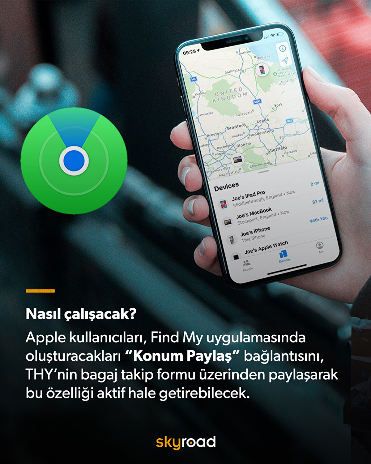 Yolcuların, Find My uygulaması üzerinden oluşturulan "Konum Paylaş" bağlantısını THY'nin web sitesinde belirlenen alana eklemesi yeterli olacak. Paylaşılan konum verileri güvenle saklanacak, 7 gün içinde otomatik olarak silinecek ya da kullanıcı isteğine bağlı olarak manuel olarak kapatılabilecek.