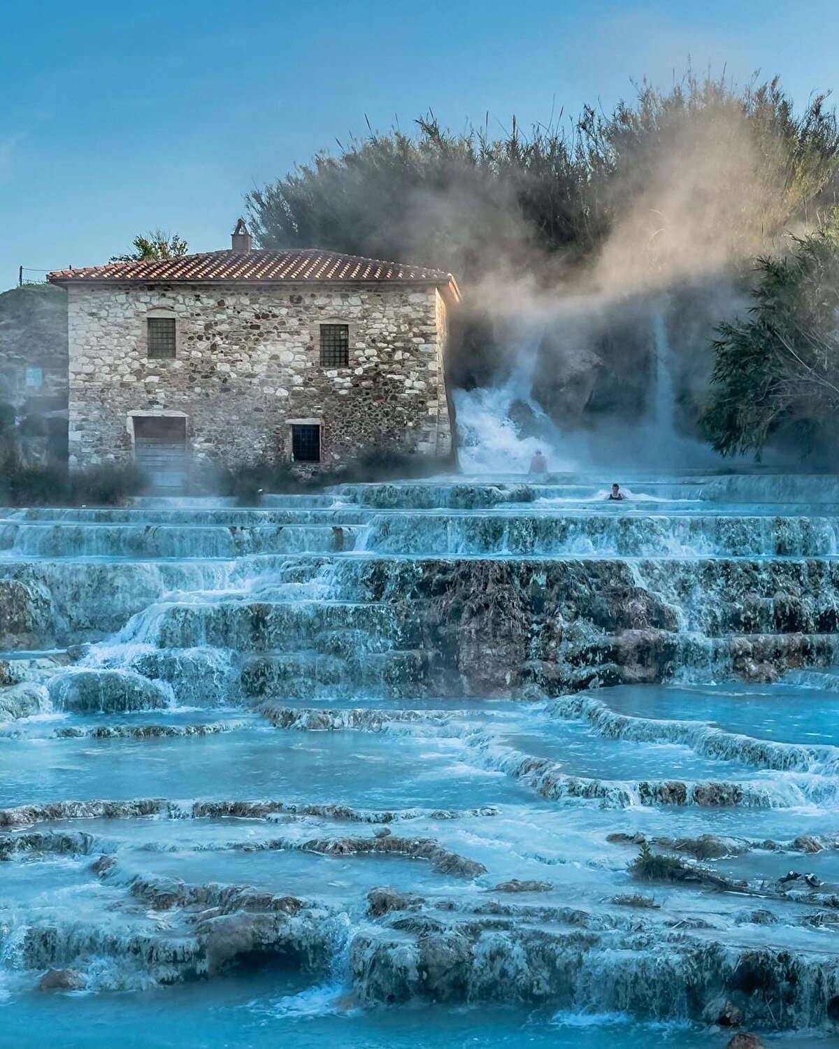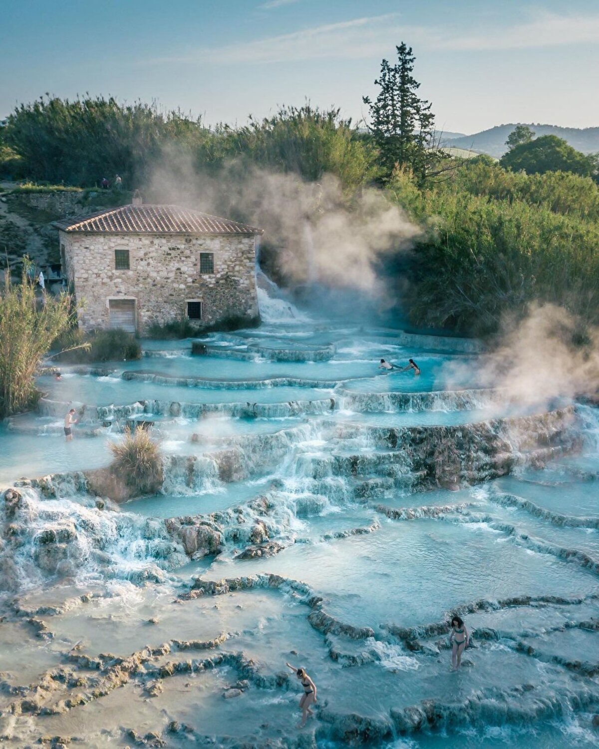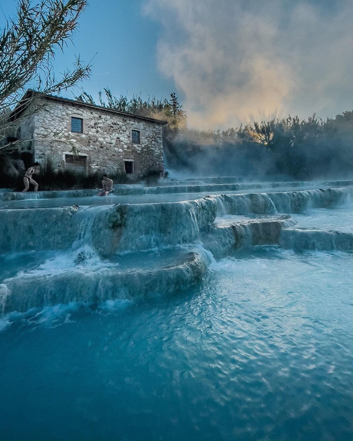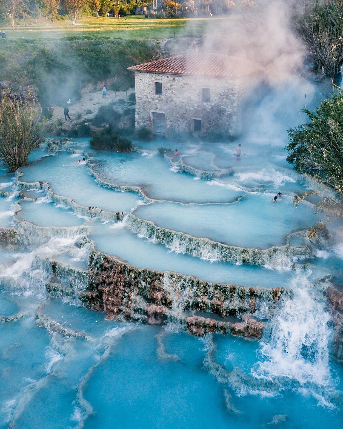 İtalya'da kaplıcalarıyla ünlü bölgesi Toskana'nın güneyinde yer alan Saturnia Kaplıcaları, bu kaplıcalar içinde en ünlüsü. Saturnia Kaplıcaları'nın şifalı etkileri olduğu bilinen sularının, 3000 yıldır bu topraklardan çıktığı düşünülüyor. Ziyaretçiler, bu şifalı sularda harika bir termal banyo deneyimi yaşıyor ve bu deneyimi yaşarken büyüleyici manzaranın da tadını çıkarıyor. Dünyanın her yerinden ziyaretçilerin geldiği, kademeli ve katmanlı dumanı tüten turkuaz havuzları, benzersiz bir görüntü ortaya çıkarıyor. Bölgede birkaç gün kalan ziyaretçiler, Saturnia'nın tadını çıkardıktan sonra Pitigliano, Sorano ve Sovano gibi diğer önemli yerleri de keşfediyor. Yılın her günü ve günün 24 saati açık olan kaplıcaları mayıs ayından kasım ayına kadar en yoğun sezonunu geçiriyor. Yoğunluk sizin için problemse eğer kış ve ilkbahar aylarını tercih edin ve Toskana'nın kırsalını keşfetmeden dönmeyin deriz.
