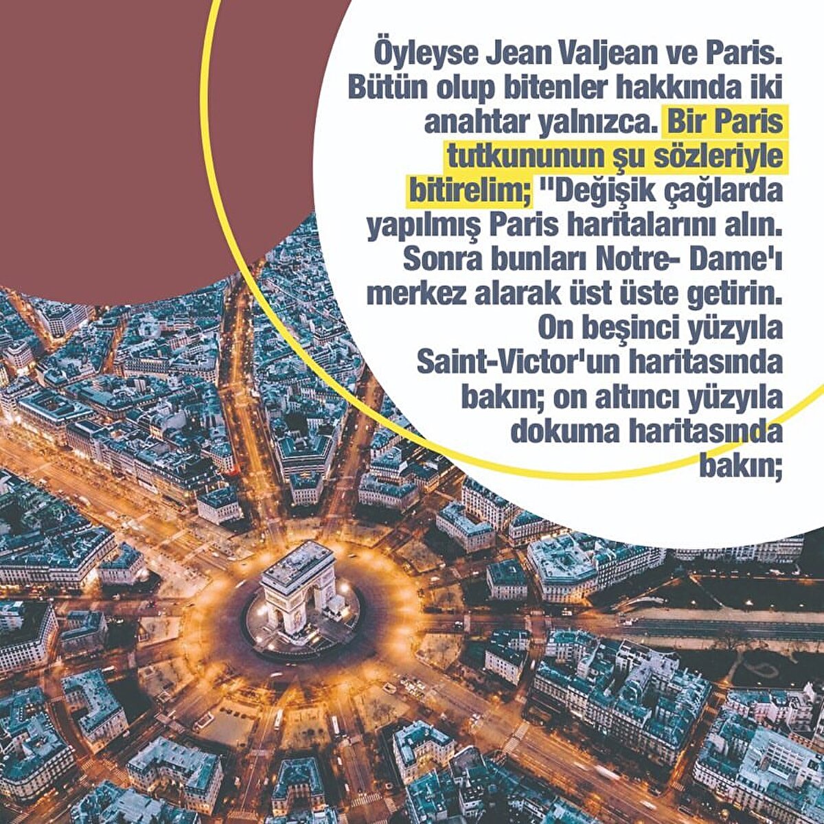 ✏🎆Paris Hugo için, her zerresi ve bütün ruhuyla aydınlığın, bilgeliğin, uygarlığın ve insanlığın şehri. İdeal bir ulus olarak kodladığı, dünyayı yeniden güzelleştirecek o kurucu aklın başkentinin Paris olduğuna tüm kalbiyle inanır Hugo. Sömürgeciliğin büsbütün bir "uygarlık hıncı" olarak şiddetini arttırdığı yılların -konuşulmaya değer- izole masumiyeti!⠀ ⠀ ⛪📌Victor Hugo'nun, elindeki tek güç olan kelimeleriyle Paris'e hayat vermeye çalışması, 1789 ihtilalinden sonra ciddi şekilde zarar gören ve yıkılması istenen Notre Dame Katedrali'ni yeniden Fransız halkının gündemine taşımanın bir yolunu aramasıyla taçlanacaktır. Çünkü Notre Dame'ın ayakta kalmasıyla Paris'in ayakta kalması aynı şeydir ona göre. Hugo, Paris'e bu anlam üzerinden bakar. ⠀ ⠀ 👉 "Palermo'nun Etna'sı vardır, Paris'in düşüncesi. Konstantinopolis güneşe yakındır, Paris uygarlığa. Athena Parthenon'u kurmuştur, Paris Bastille'i yıkmıştır." Victor HUGO