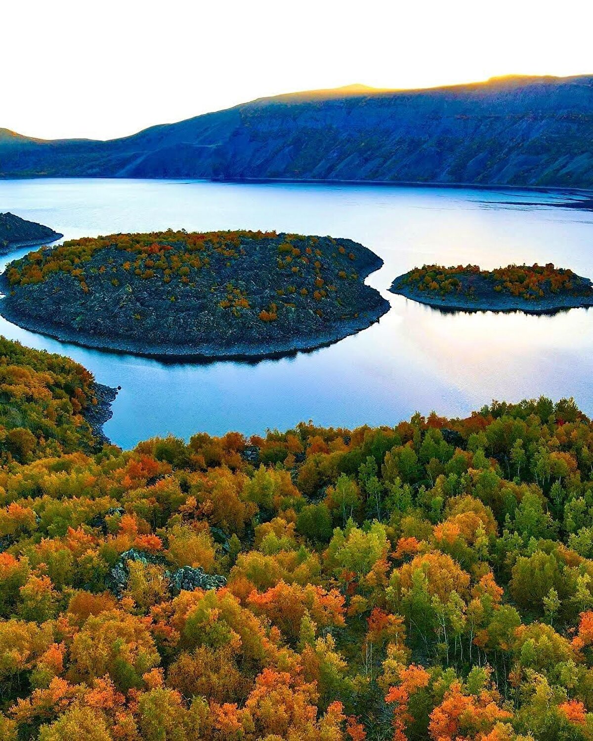 Nemrut Krater Gölü, doğanın en etkileyici renklerini ve ışık oyunlarını barındıran bir doğa harikası. Gölün merkezindeki adacıklar, mevsimlere göre renk değiştiren ağaçlar ve huzurlu suyu, ziyaretçilere ruhlarını dinlendirebilecekleri bir atmosfer sunuyor.