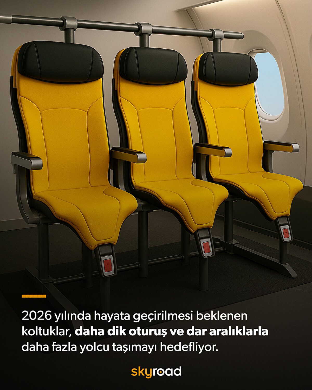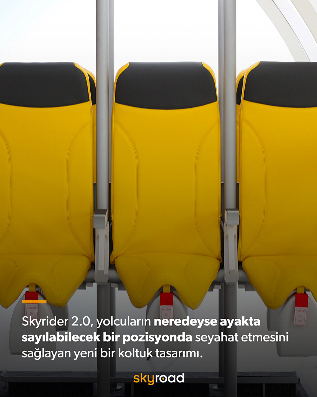 Havayolu şirketlerinin yolcu kapasitesini artırmak için ayakta yolcu almaya hazırlanıyor. 'Skyrider 2.0' adı verilen ve yolcuların neredeyse ayakta sayılabilecek bir pozisyonda seyahat etmesini sağlayan yeni bir koltuk tasarımı üzerinde çalıştığı açıklandı.