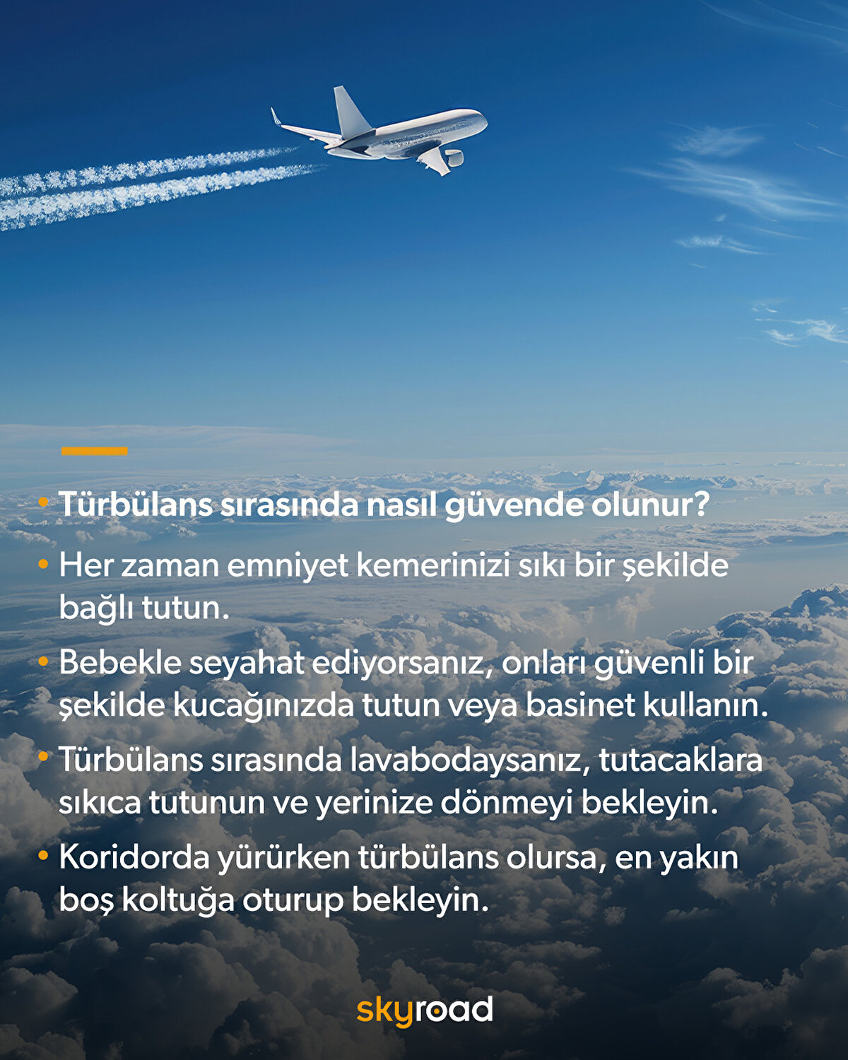 Bu yüzden, türbülans anlarında yapmanız gereken en önemli şey sakin kalmak ve her zaman kemerinizi bağlı tutmak. Uçaklar, bu sarsıntılara dayanıklı bir mühendislikle inşa edilir ve pilotlar, uçuş sırasında en güvenli rotaları bulmak için sürekli olarak hava durumunu takip eder. Türbülans sadece geçici bir rahatsızlıktır; yolculuğunuzu tehlikeye atan bir durum değil. Uçak gökyüzünde dans ederken, siz sadece bu olağanüstü seyahatin tadını çıkarın!