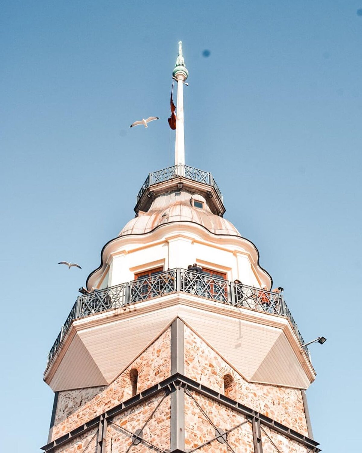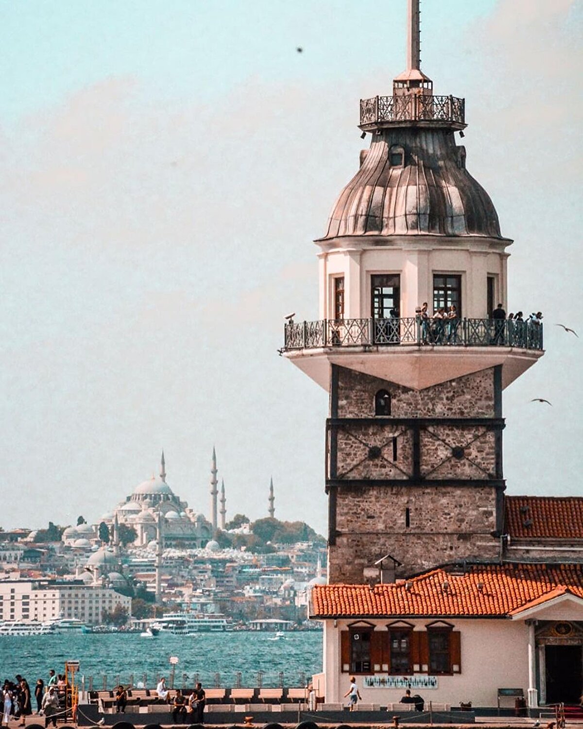 İstanbul'un simgelerinden, Üsküdar İlçesi'nde kalan son Bizans yapılarından Kız Kulesi 🧡 ⠀ ⠀ 📌 Tarihi kaynaklarda adından ilk kez M.Ö. 410 yılında söz edilen Kız Kulesi Atinalı Alkibiades tarafından boğazdaki gemi trafiğini denetlemek ve onlardan vergi almak amacıyla inşa ettirilmiştir. Bizans döneminde ise inşa edilen ek bina ile gümrük istasyonu olarak faaliyet göstermiştir. Osmanlı döneminde ise savunma kalesi, sürgün istasyonu, karantina odası gibi birçok alanda kullanılmıştır. ⠀ ⠀ Küçük bir adacığın üzerine inşa edilmiş olan kule, yaklaşık 18 metre yüksekliğindedir ve 5 kattan oluşmaktadır. Üsküdar İlçesi'nde kalan son Bizans yapılarındandır.⠀