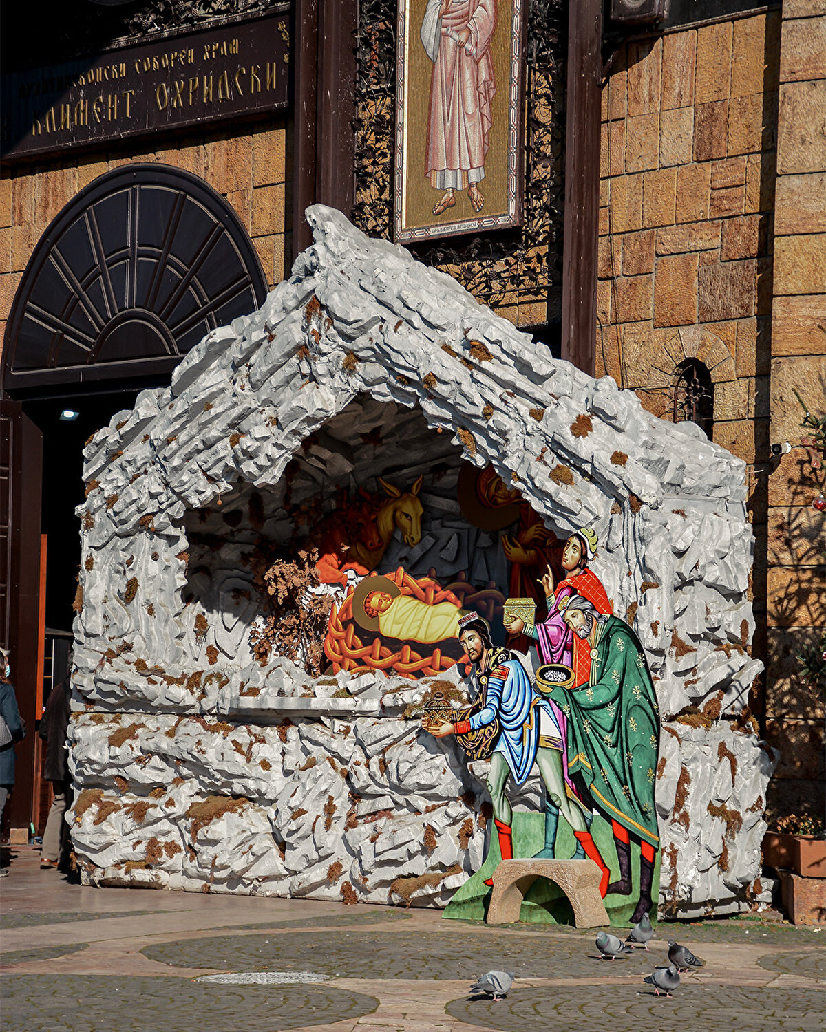 Modern mimarinin sıradışı eserlerinden biri olan bu katedral, Slavko Brezovski'nin dahi ellerinden çıkma. 1972'de temeli atılan kilise, Aziz Klement'in 1150. doğum yıldönümünde, yani 1990'da kapılarını herkese açtı. Makedon Ortodoks Kilisesi'nin en büyüğü olmasıyla övünen bu yapı, sadece dini değil, aynı zamanda kültürel bir simge. Kubbesinin altındaki koca tahtı ve yanındaki dev sandalyeleriyle sanki bir zamanlar krallar ve kraliçeleri ağırlamış gibi. Ama asıl büyüleyici olan, fresklerin renk cümbüşü ve İsa'nın devasa yüzü. Eski Ahit peygamberlerinin oturmuş halleri ve büyük pencerelerden süzülen ışık huzmeleri ise görenleri adeta bir başka dünyaya götürüyor. İslam cemaatinin kiliseye hediye ettiği çeşme ise İslam dininin hoşgörü ve barış mesajını pekiştiren simgesel bir armağan.