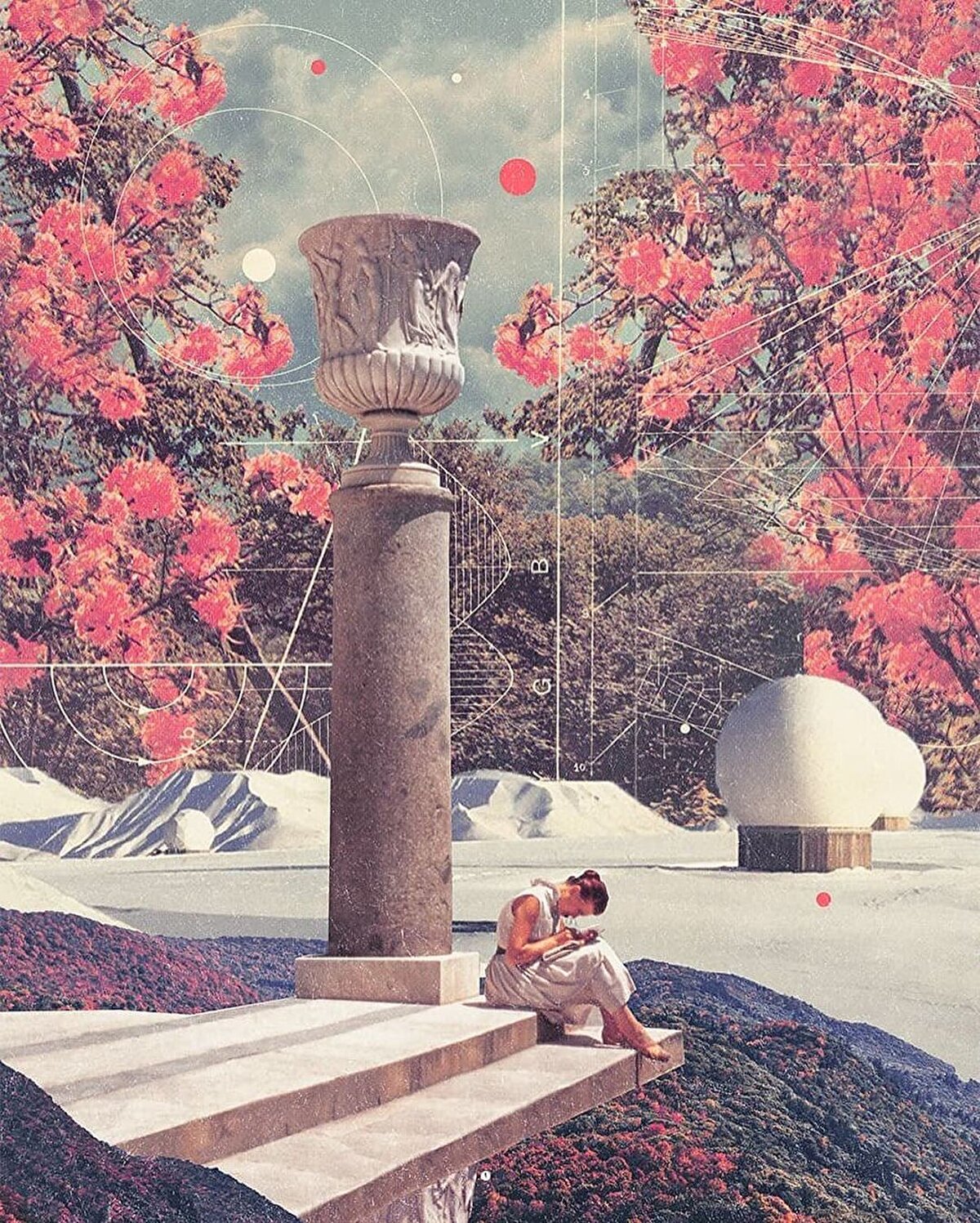 Bizim favorimiz 9, sizinkileri alalım. 😌⠀ ⠀ 📌 Frank Moth, Atina merkezli anonim bir sanat ikilisinin takma adı. İkili birlikte, okyanuslar, çöller ve genel olarak evren gibi geniş alanlardaki unsurları birleştiren atmosferik kolajlar oluşturuyor. Sanatçılar, bu manzara unsurlarını onlarca yıllık kadın ve erkek imajlarıyla birleştiriyor ve onlara fütüristik bir his veriyor. Geçmiş ve şimdiki zaman arasındaki bu itme ve çekişme nedeniyle ikili, çalışmalarından "uzak ama aynı zamanda tanıdık bir gelecekten gelen nostaljik kartpostallar" olarak bahsediyor. ⠀ ⠀ 📸: @frankmot