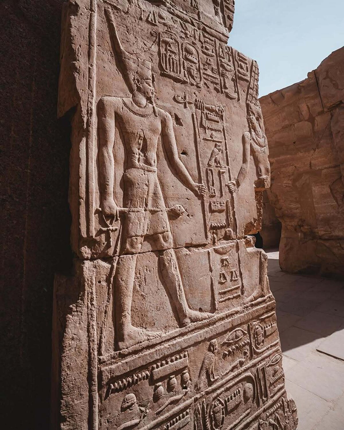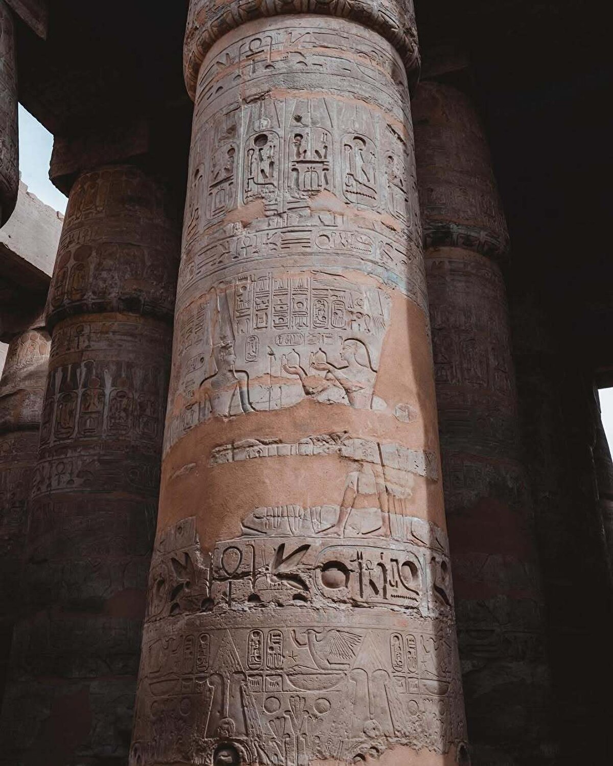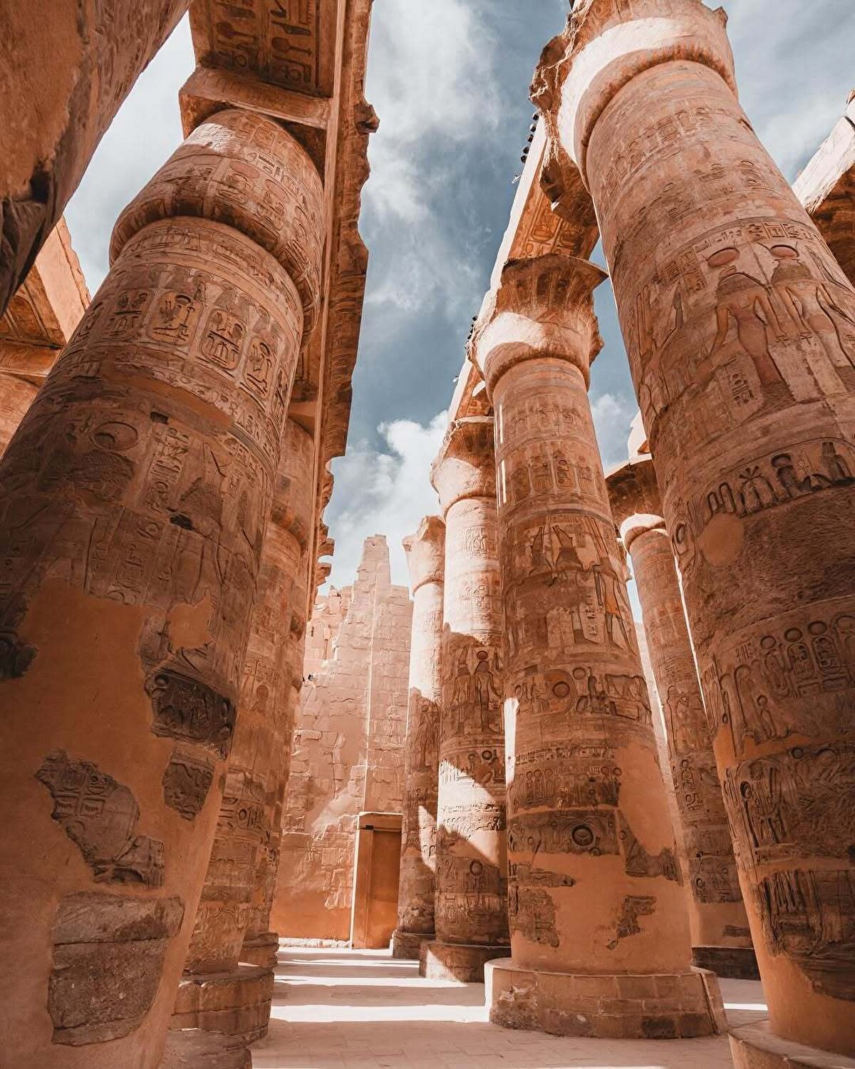 Karnak Tapınağı, büyük bir alanı kapsıyor. İçindeki yapılarla oldukça dikkat çekici olan bu tapınağın en ünlü bölümü, devasa dikilitaşlar ve sütunlarla dolu olan Büyük Hipostil Salonu. Bu salon,134 sütunla desteklenerek oldukça ihtişamlı bir atmosfer sunuyor. Ayrıca tapınakta firavunların zaferlerini gösteren kabartmalar ve yazıtlarda bulunuyor.