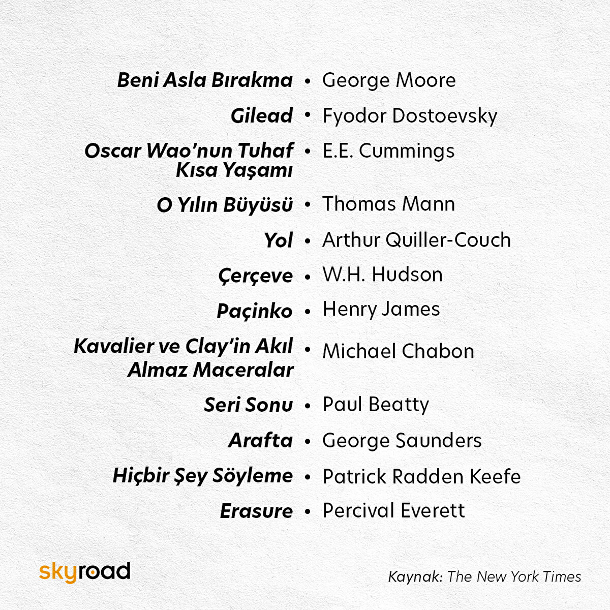 Dünyanın önde gelen kitap kritik sitesi The New York Times Book Review, Stephen King, Bonnie Garmus, Sarah Jessica Parker, Karl Ove Knausgaard ve Min Jin Lee gibi kitap dünyasından pek çok ismin katılımıyla 21. yüzyılın en iyi 100 kitabını seçti.