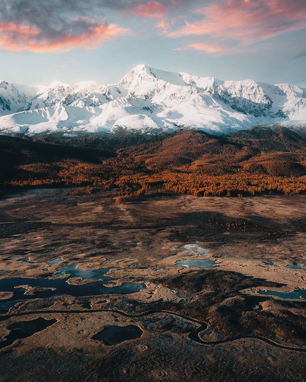 Orta ve Doğu Asya'da bulunan; Rusya, Çin, Moğolistan ve Kazakistan'ın birleştiği ve yılın tüm zamanlarında kar ve buzla kaplı olan Altay Dağları, 350 ile 4500 metre arasında rakıma sahip buzul zirveleridir. Tamamı dağlık bir alanda yer alan ve su kaynakları bakımından zengin olan bu bölge, çevresinde çok sayıda nehir ile göl barındırıyor. Aynı zamanda Altay bölgesinde 2 binden fazla tür ve çok sayıda endemik bitki bulunuyor. Altay Dağları'nın sunduğu doğal manzara görüntüsü fotoğraflamaya ve resmetmeye değer sayılı doğal güzellikler arasında. Bölge aynı zamanda her türlü açık hava sporunun yapılmasına elverişli bir iklime sahip olmasıyla trekking,tırmanma, hafif nehir raftingi, kano ve dağcılık gibi aktivitelere ev sahipliği yapıyor.