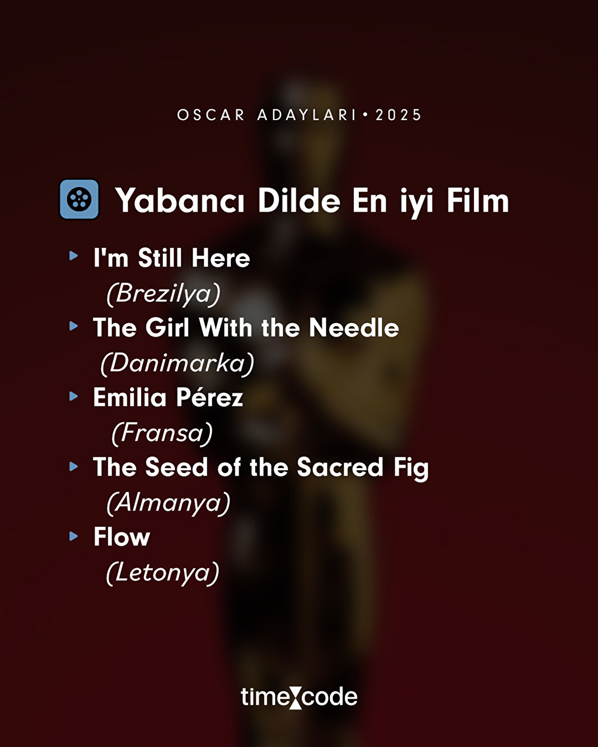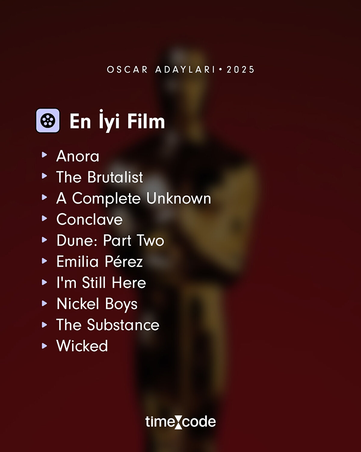 Bu yıl 97'ncisi düzenlenecek Oscar Ödülleri'nin adayları bugün açıklandı. Wicked, Emilia Pérez ve Brutalist bu yılın Oscar adayları arasında başı çekiyor📢📌Daha önce yapılması planlanan adaylık töreni Los Angeles'ta çıkan ve büyük bir yıkıma neden olan yangınlar nedeniyle ertelenmişti.Ödüller ise 2 Mart'ta sunuculuğunu ABD'li komedyen Conan O'Brien yapacağı törende sahiplerini bulacak⏳