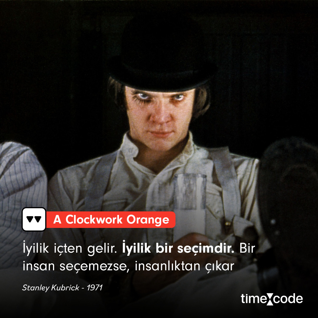 "İyilik içten gelir. İyilik bir seçimdir. Bir insan seçemezse, insanlıktan çıkar."🎬: Otomatik Portakal (1971)