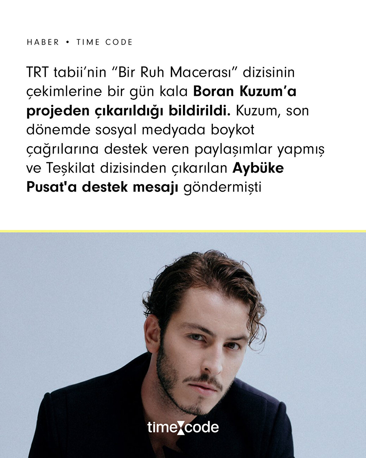 Birsen Altuntaş'ın haberine göre; TRT tabii'nin “Bir Ruh Macerası” dizisinin çekimlerine bir gün kala Boran Kuzum'a projeden çıkarıldığı bildirildi⏩