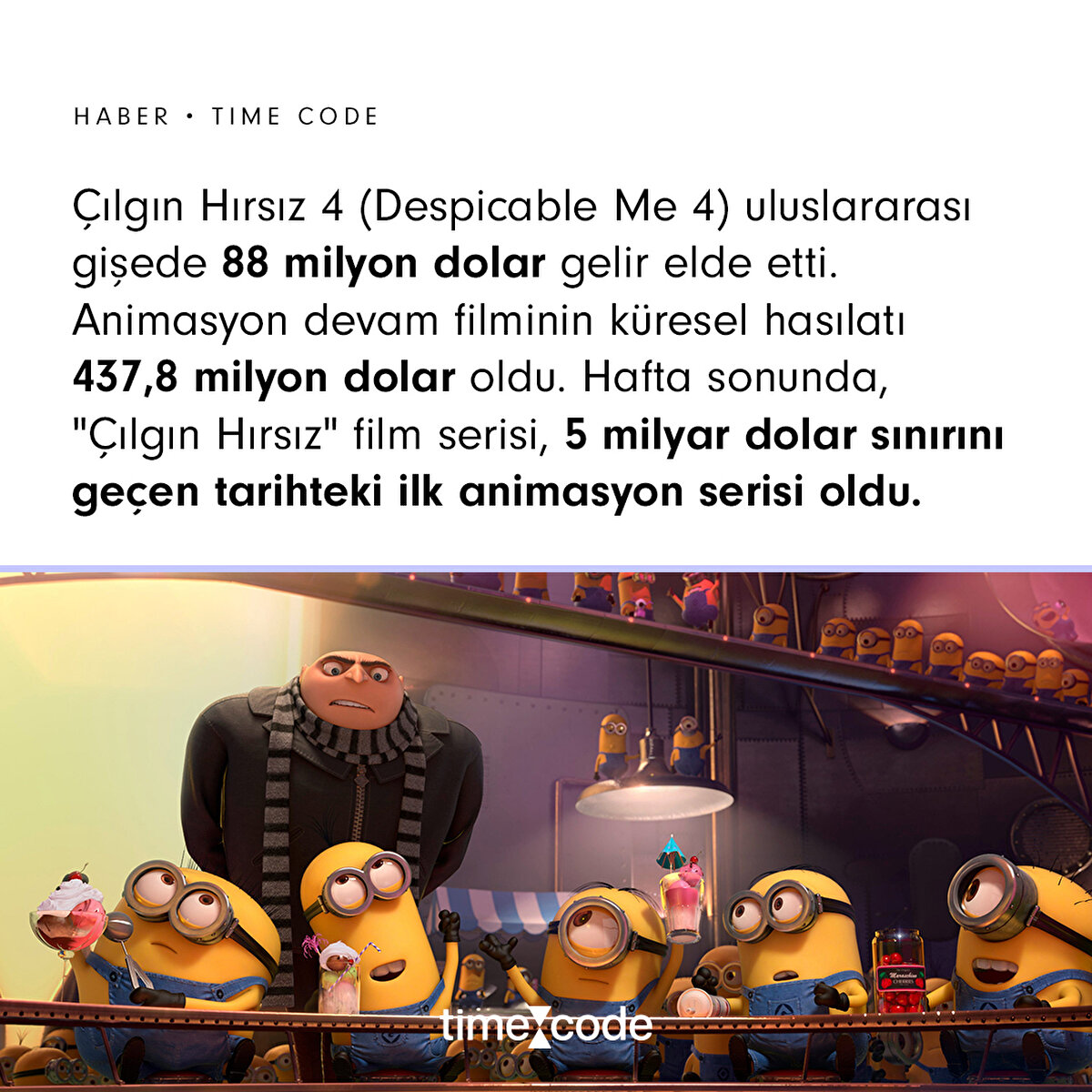 "Çılgın Hırsız" film serisi, 5 milyar dolar sınırını geçen tarihteki ilk animasyon serisi oldu.⏩