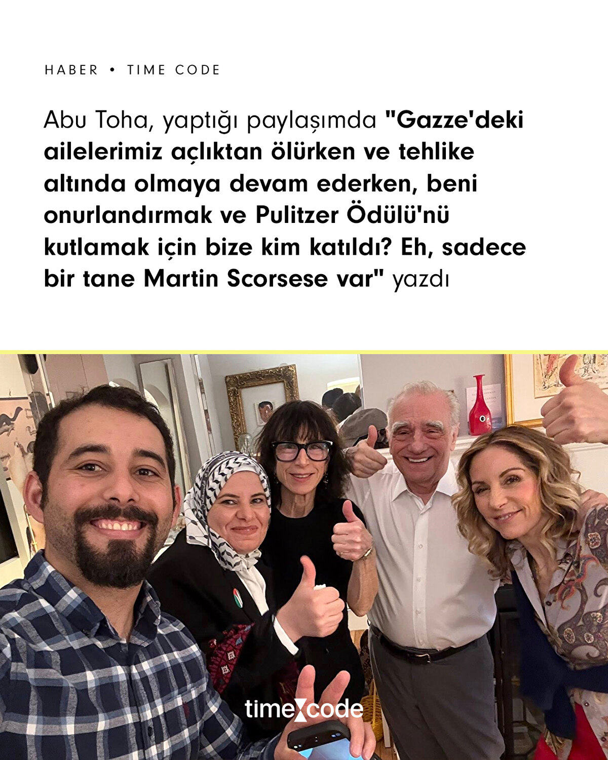 Martin Scorsese, Mosab Abu Toha'nın Pulitzer ödülünü, şairin evine konuk olarak birlikte kutladıFilistinli şair ve yazar Mosab Ebu Toha , Gazze'deki Filistinlilerin hayatlarını anlatan etkili makaleleri nedeniyle Pulitzer Yorum Ödülü'ne layık görüldü📌
