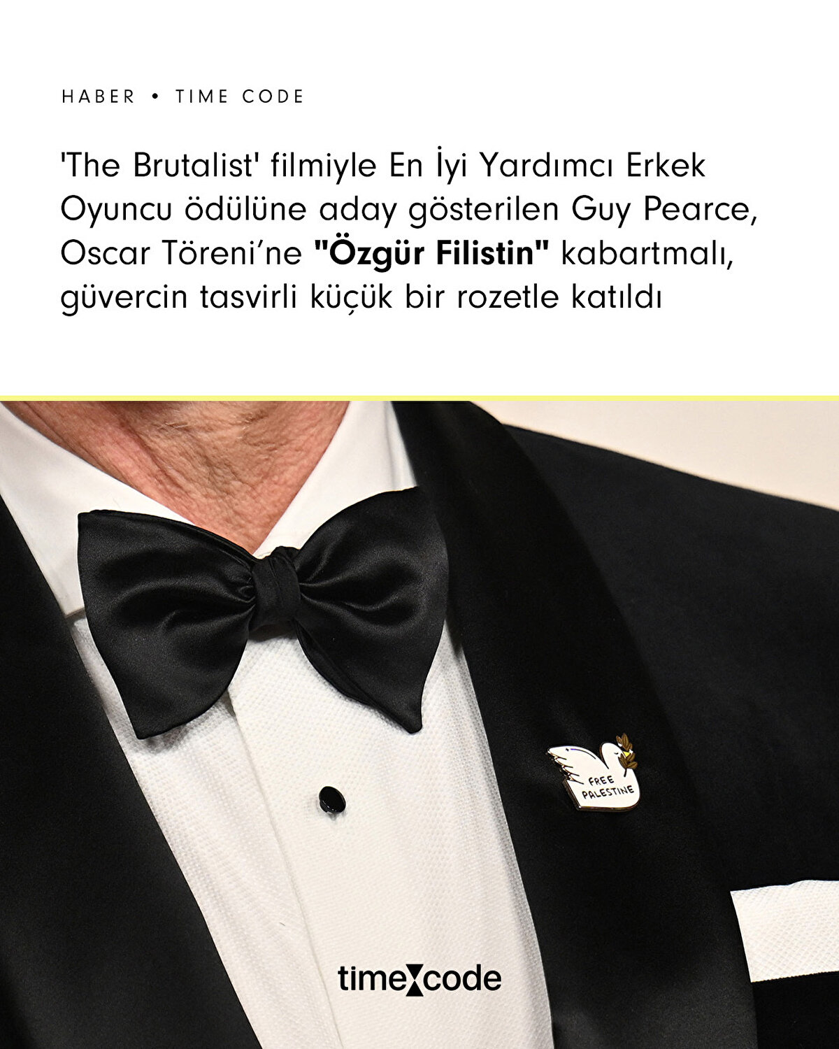 'The Brutalist' filmiyle En İyi Yardımcı Erkek Oyuncu ödülüne aday gösterilen Guy Pearce, Oscar Töreni'ne "Özgür Filistin" kabartmalı bir rozetle katıldı⏩