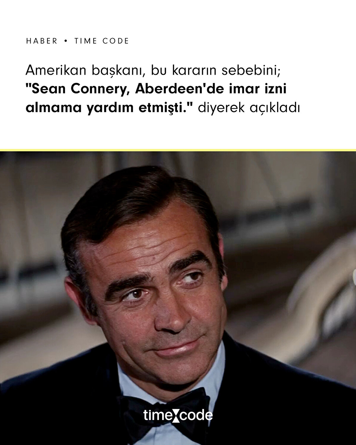Amerikan başkanı sebep olarak ise "Sean Connery, Aberdeen'de imar izni almama yardım etmişti." dedi📌