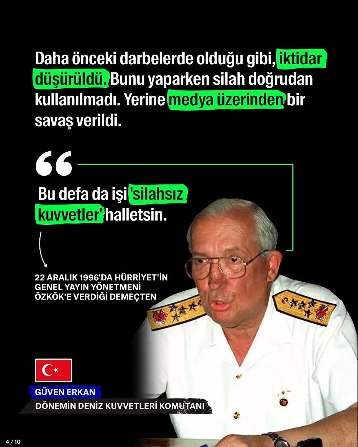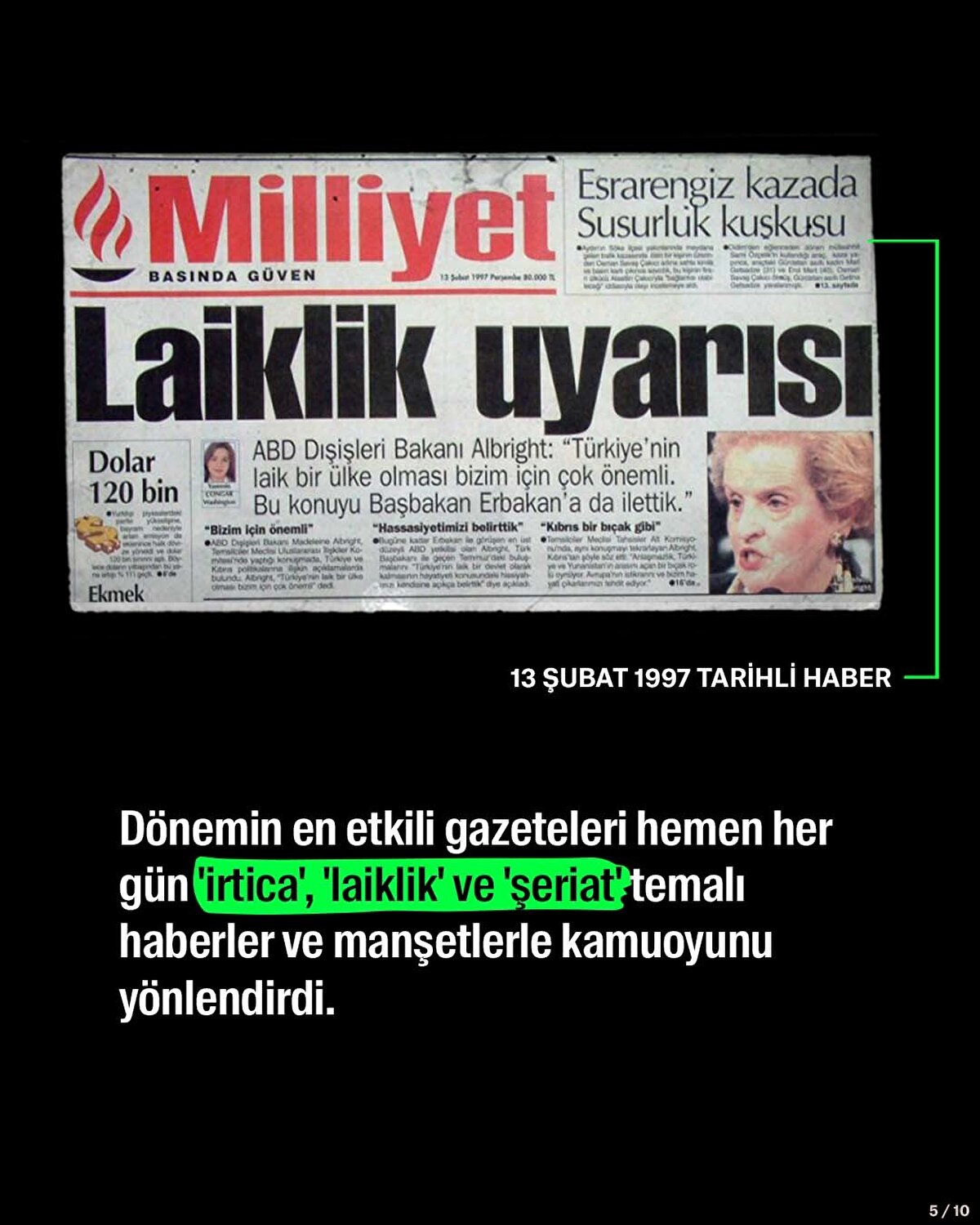 Postmodern darbenin 28 Şubat 1997'deki Milli Güvenlik Kurulu'nda (MGK) generallerin darbe tehdidiyle alınan kararlarla başladığı kabul edilse de aslında medya, darbe sürecini 1996'dan itibaren attığı manşetlerle başlatmıştı.