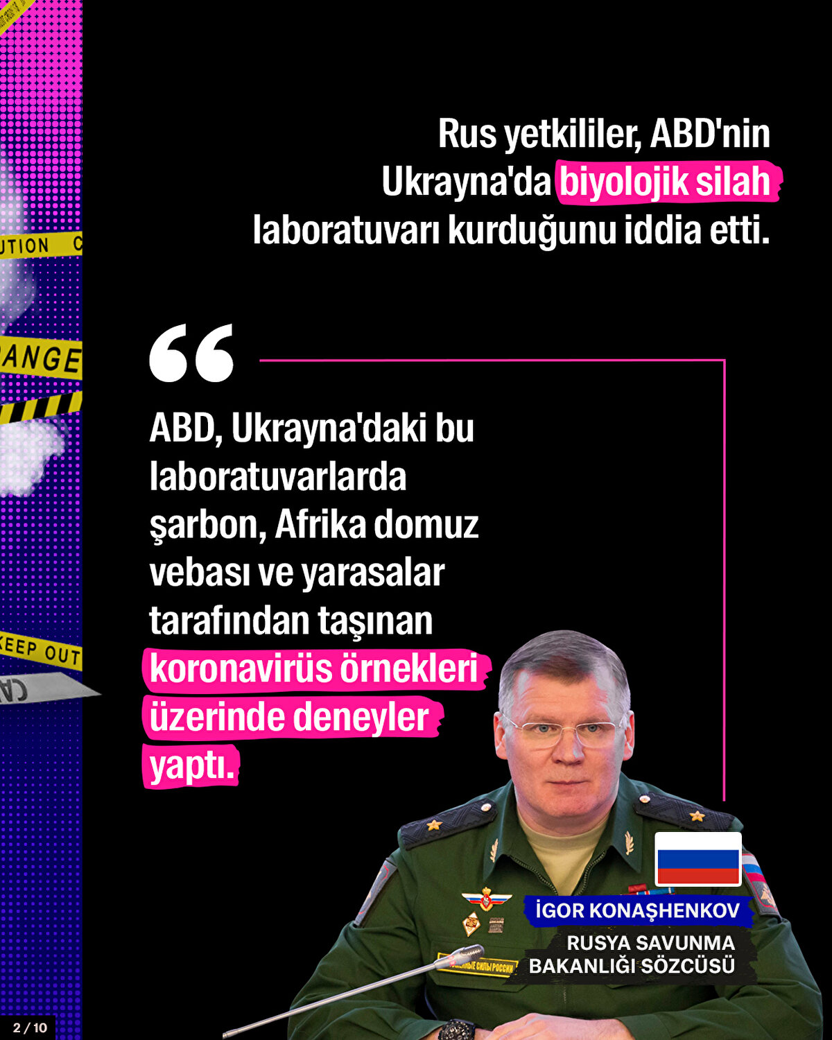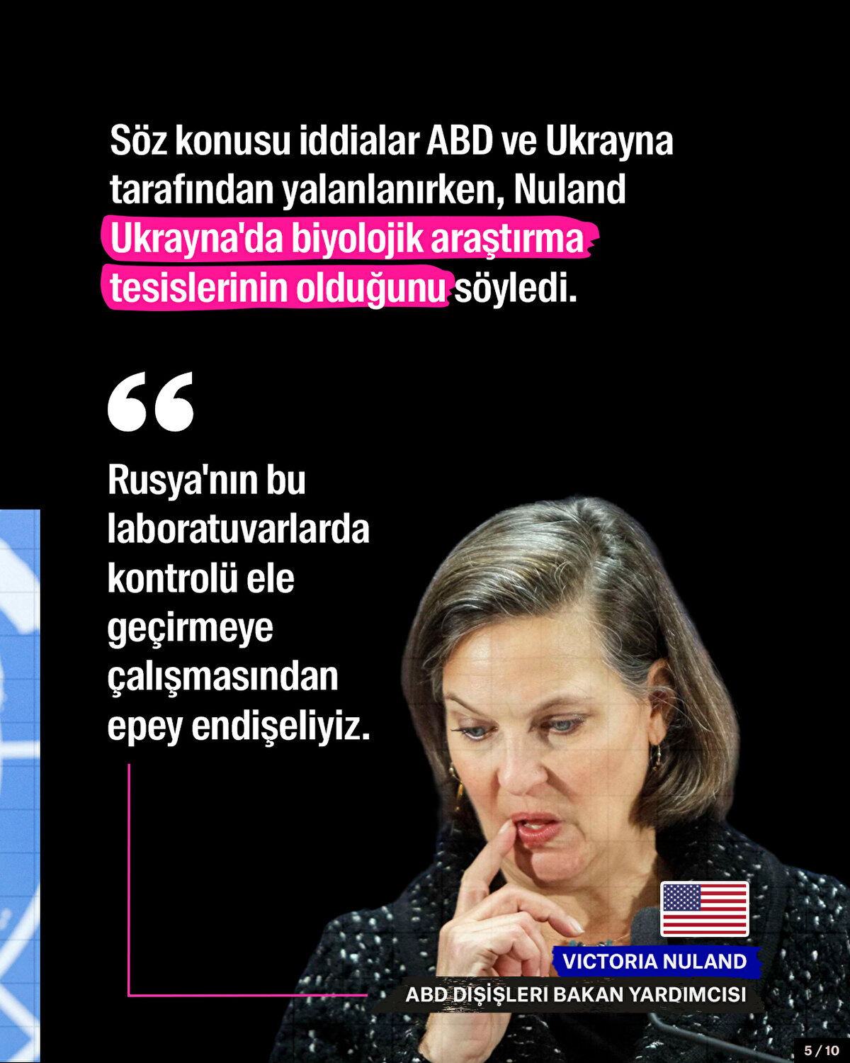 Rus yetkililer, ABD'nin Ukrayna'da biyolojik silah laboratuvarı kurduğunu iddia etti. Söz konusu iddialar ABD ve Ukrayna tarafından yalanlanırken, ABD Dışişleri Bakan Yardımcısı Nuland, Ukrayna'da biyolojik araştırma tesislerinin olduğunu söyledi.